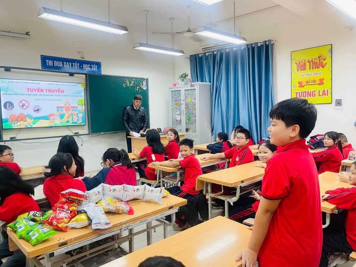 Trong cuộc sống hiện đại, khi nhiều điều mới lạ dễ thu hút sự tò mò của học sinh, thuốc lá điện tử đang trở thành một nguy cơ âm thầm xâm nhập môi trường học đường. Chiều ngày 11/12/2025, tập thể lớp 6A1 chúng em vinh dự được đón luật sư Hồ Hữu Phi - đại diện Đoàn Luật sư Thành phố Hà Nội đến tuyên truyền, phổ biến kiến thức pháp luật liên quan đến thuốc lá điện tử. Buổi chia sẻ được tổ chức sinh động, gần gũi, giúp chúng em hiểu rõ hơn về tác hại của thuốc lá điện tử cũng như trách nhiệm của bản thân trong việc bảo vệ sức khỏe.