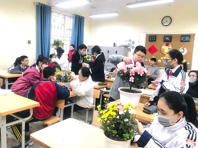 “Tết trồng cây” là hoạt động thường niên do Ban phụ trách Đội phát động. Xuân Quý Mão năm nay, ngay sau kì nghỉ Tết, lớp7A1 chúng em quay trở lại trường và hưởng ứng phong trào trên với chậu cây Hạnh phúc, cây Vạn liên thanh, những khóm Cúc chi vàng rực rỡ, hoa Đỗ quyên hồng duyên dáng … Mỗi chậu cây đều xanh tươi và đẹp đẽ làm sao!