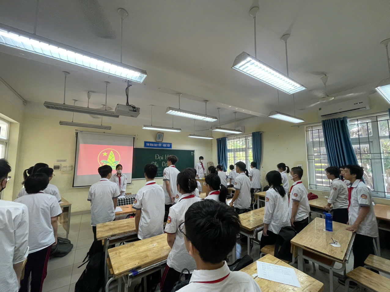 Bạn Nguyễn Vân Khánh tiến hành chào cờ bắt đầu những nghi thức đầu tiên của Đại hội. Bài hát Quốc ca, Đội ca vang lên hùng tráng, tự hào. Tiếp theo chương trình, chúng em đã được nghe báo cáo tổng kết hoạt động Chi đội năm học 2023-2024 và lắng nghe phương hướng hoạt động đội trong năm 2024-2025. Bên cạnh đó là phần tham luận xây dựng kế hoạch hoạt động của chi đội và những ý kiến cần hoạt động trong năm nay.