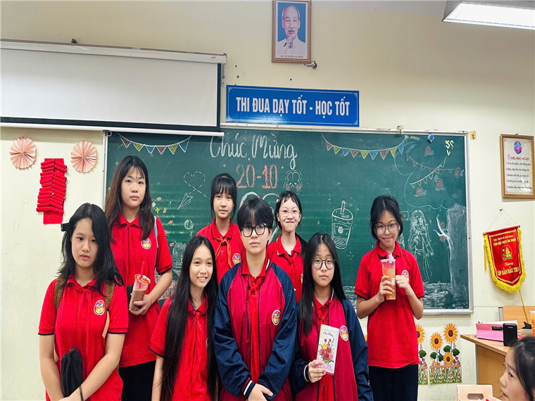 Kết thúc phần trình diễn và tặng quà của các bạn nam, cả lớp con càng phấn khởi hơn khi nhận được những cốc trà sữa thơm ngon trên tay. Bữa tiệc liên hoan dù đơn giản, nhưng chúng con cảm thấy rất ấm áp, được cười nói vui vẻ và cảm nhận những tình cảm tràn đầy ý nghĩa. Thay mặt tập thể lớp 7A3, chúng con xin gửi lời cảm ơn đến Ban giám hiệu nhà trường, các thầy cô và bố mẹ đã luôn quan tâm đến lớp chúng con, tạo điều kiện cho chúng con một buổi liên hoan vui vẻ và đáng nhớ. Nhân Ngày Phụ nữ Việt Nam 20/10 sắp đến, chúng con xin kính chúc những người phụ nữ Việt Nam luôn mạnh khoẻ, hạnh phúc và tràn ngập niềm vui.