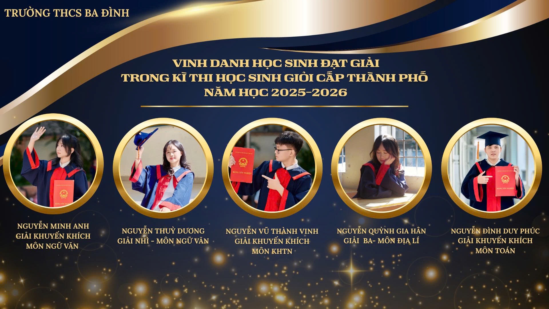 Thành quả hôm nay không chỉ là niềm vui của mỗi cá nhân mà còn là niềm tự hào chung của thầy cô, gia đình và tập thể lớp 9A8. Đây sẽ là động lực quý giá để các bạn tiếp tục vững bước, tự tin chinh phục những đỉnh cao mới. Xin chúc mừng 5 gương mặt tiêu biểu đã nỗ lực không ngừng, mang về những trái ngọt đáng tự hào cho gia đình, nhà trường và lớp 9A8!
