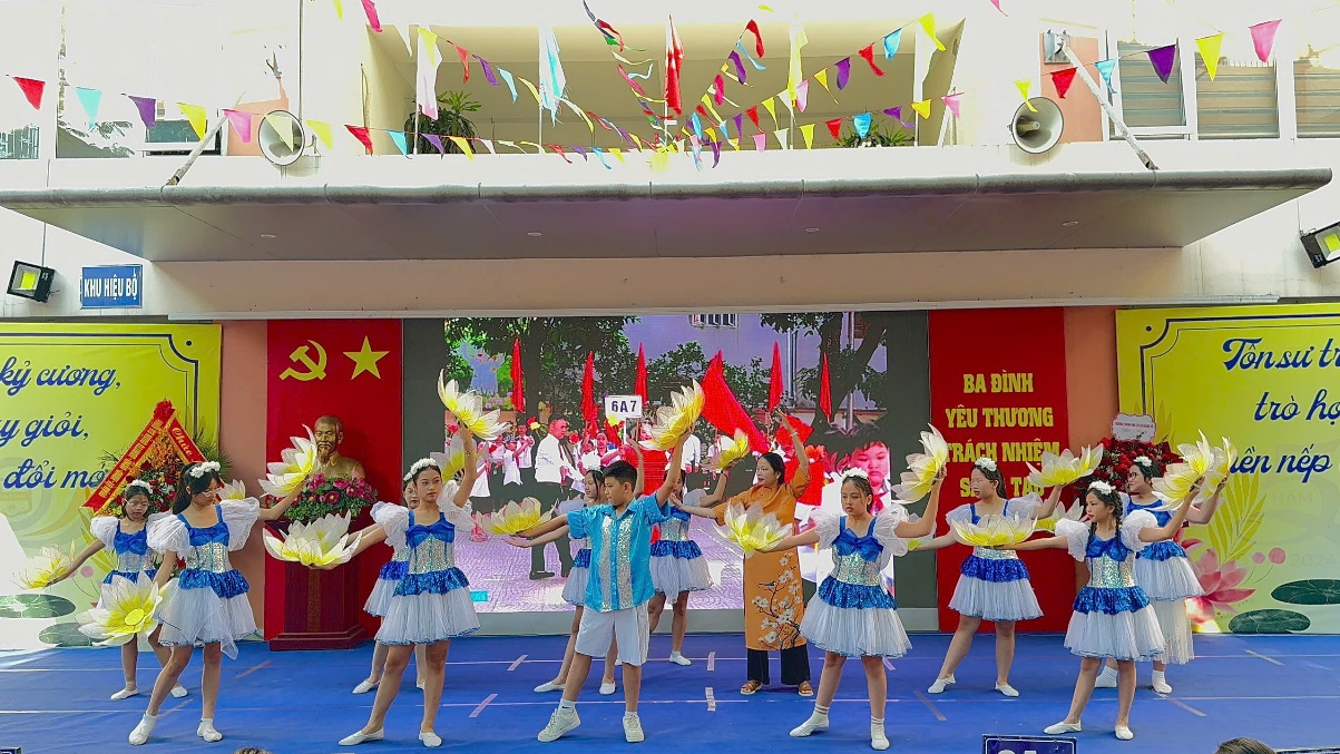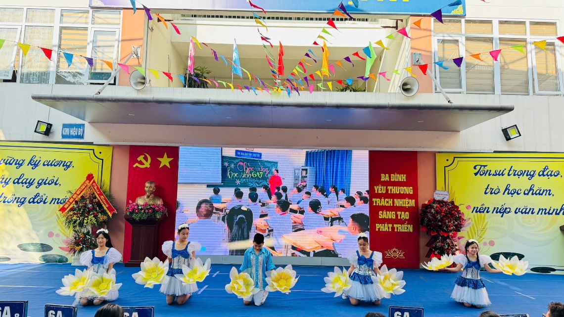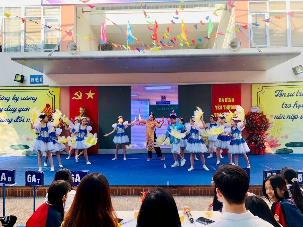 Trong không khí hân hoan chào mừng ngày nhà giáo Việt Nam 20/11 và kỉ niệm 50 năm ngày thành lập trường THCS Ba Đình, em rất tự hào khi là học sinh của một ngôi trường có bề dày truyền thống, nơi chúng em được dìu dắt, yêu thương, tôn trọng. Bên cạnh việc học tập chăm chỉ, tặng các thầy cô nhiều hoa điểm tốt trong dịp này, chúng em còn được tham gia cuộc thi văn nghệ. Dưới sự dìu dắt, hướng dẫn, kiêm “biên đạo”, kiêm “diễn viên múa”, cô chủ nhiệm của chúng em - cô Linh cùng các bạn trong đội văn nghệ của lớp đã xuất sắc giành giải nhất Khối 6 với bài múa “Bài học đầu tiên”. Để có được thành công này không thể thiếu sự đồng hành của các bác Phụ huynh, đã luôn động viên, hỗ trợ về vật chất và tinh thần cho chúng em, cùng sự cổ vũ nhiệt tình, đáng yêu của các bạn lớp 6A7. Em cảm thấy rất phấn khởi và tự hào vì được là 1 thành viên của ngôi nhà cấp hai Ba Đình. Giải thưởng ngày hôm nay là món quà chúng em giành tặng cô chủ nhiệm, cùng tất cả các thầy, cô giáo của trường THCS Ba Đình. Chúng em - tập thể 6A7 xin kính chúc các thầy, các cô luôn mạnh khỏe, hạnh phúc và thành công trong sự nghiệp trồng người.