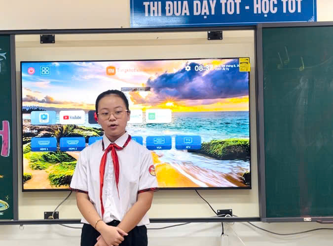 Bạn học sinh tự tin trình bày ý kiến trước lớp trong buổi sinh hoạt ý nghĩa