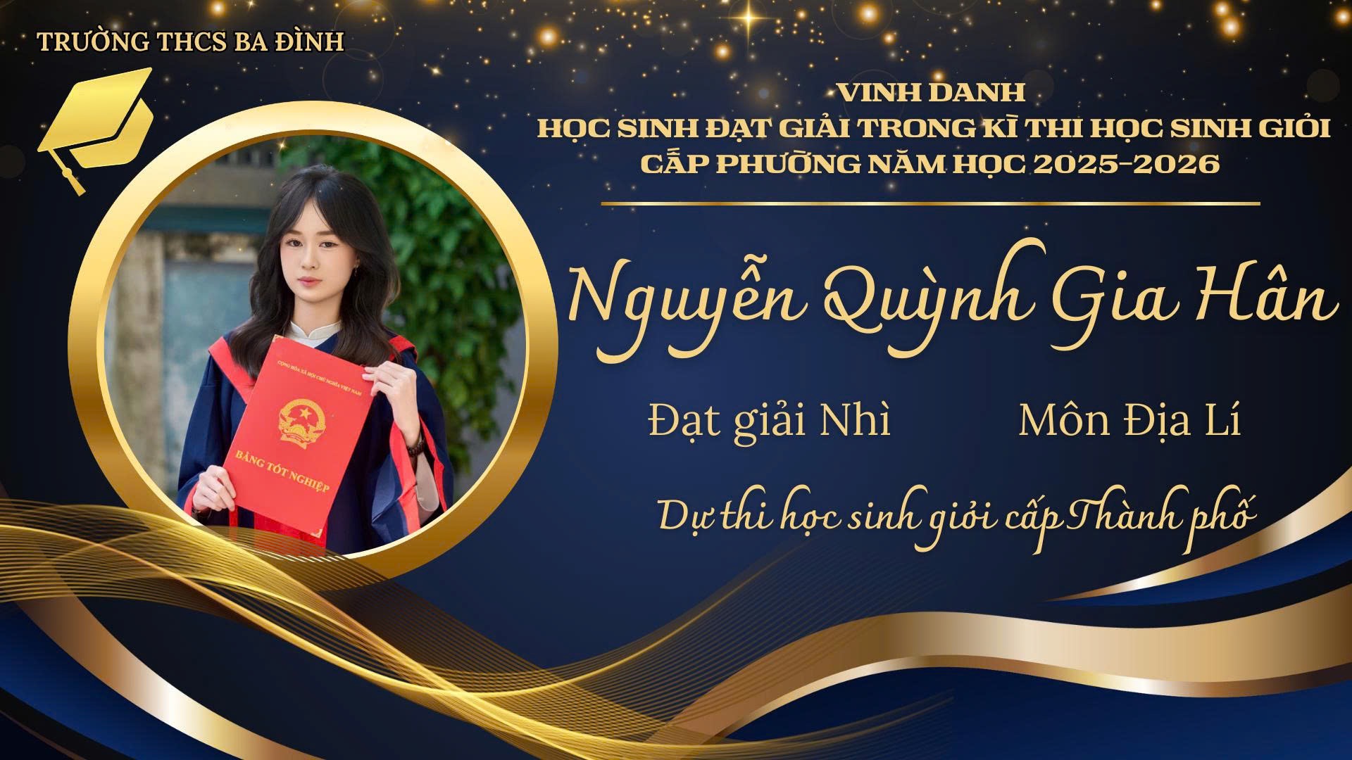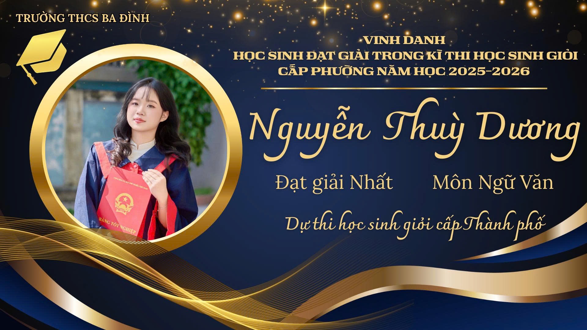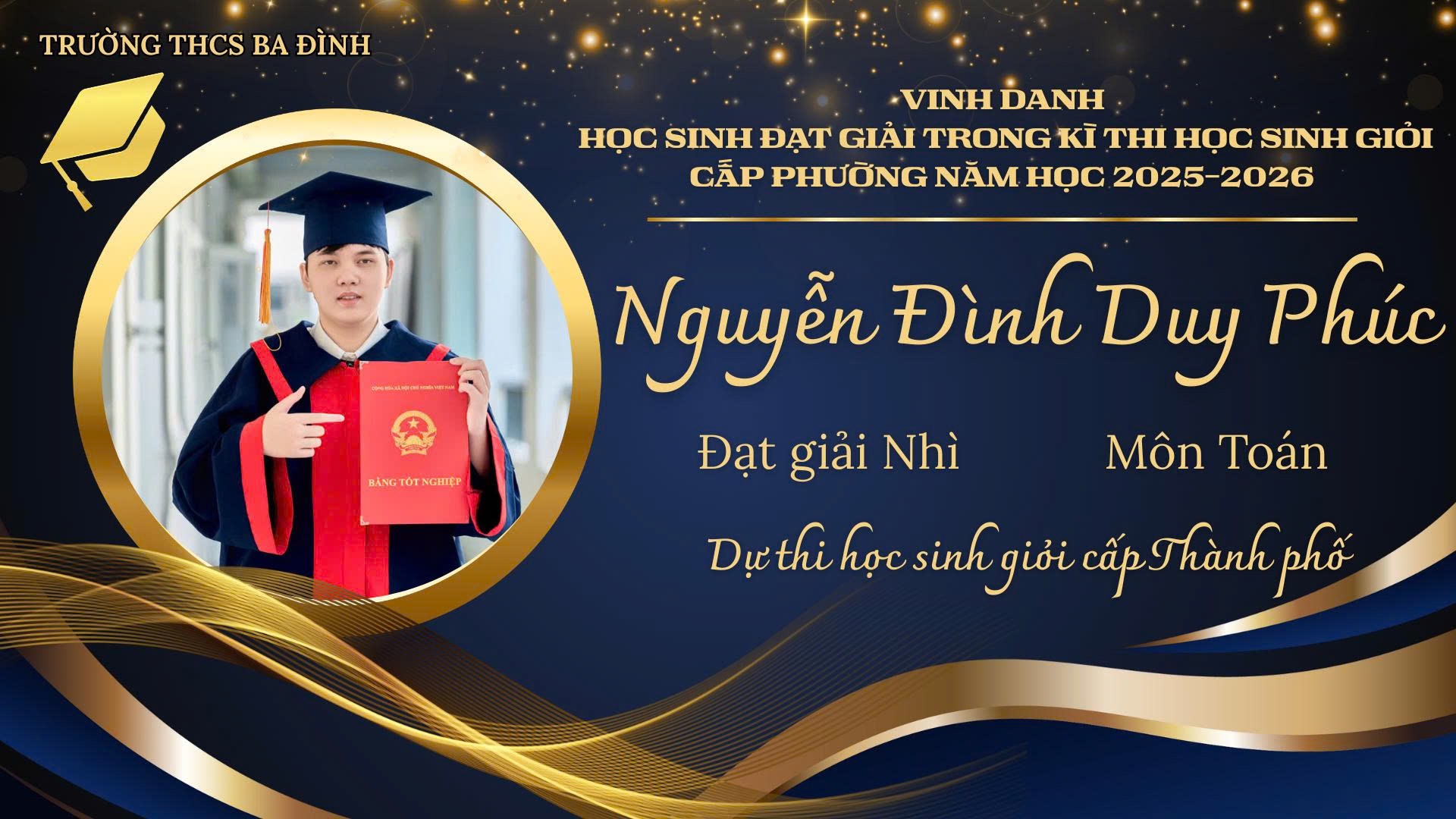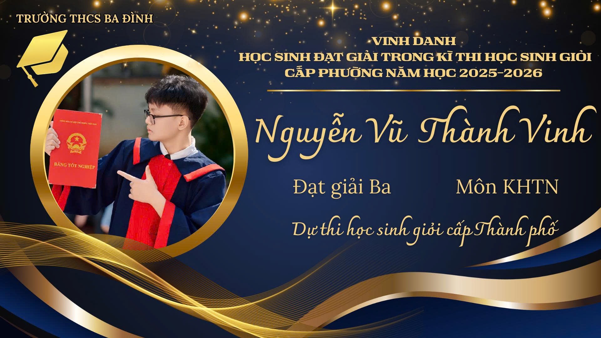 Trên chặng đường sắp tới, mong rằng các bạn sẽ tiếp tục giữ vững tinh thần bình tĩnh, tự tin và niềm say mê học tập không ngừng. Xin gửi lời chúc mừng chân thành nhất tới 5 học sinh xuất sắc được tham gia Kỳ thi học sinh giỏi cấp Thành phố, các bạn chính là niềm tự hào của thầy cô, của lớp 9A8 và của Trường THCS Ba Đình. Chúc các bạn tiếp tục tỏa sáng, đạt kết quả cao và vững bước trên con đường chinh phục tri thức./.