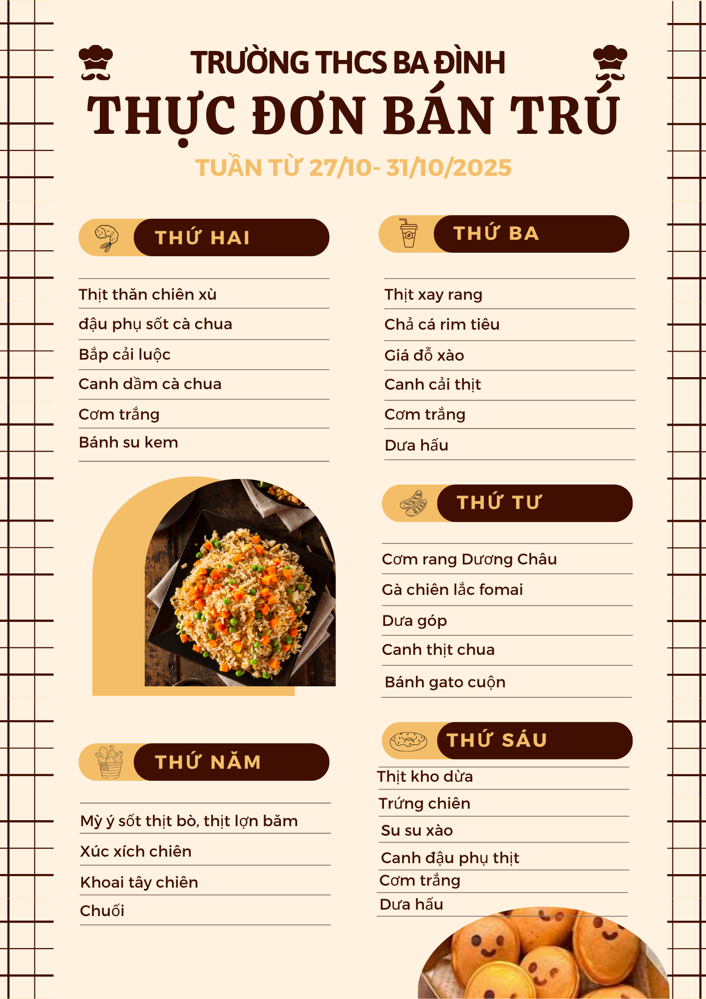 Thực đơn bán trú tuần từ ngày 27/10 đến hết ngày 31/10/2025