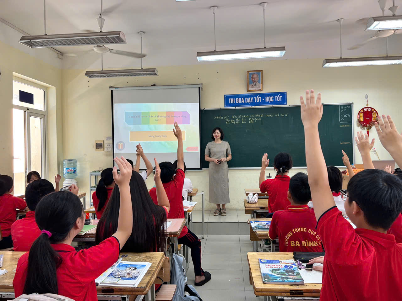 Học sinh lớp 7A8 tham gia tiết học với tinh thần tích cực, chủ động và tự tin. Các em hào hứng thảo luận nhóm, cùng nhau đọc bản đồ, phân tích số liệu, trình bày kết quả và đặt ra những câu hỏi thú vị cho bạn bè. Tiết học không chỉ giúp học sinh củng cố kiến thức mà còn khơi dậy niềm yêu thích đối với bộ môn Địa lí, nuôi dưỡng tinh thần khám phá và mở rộng hiểu biết về thế giới xung quanh.
