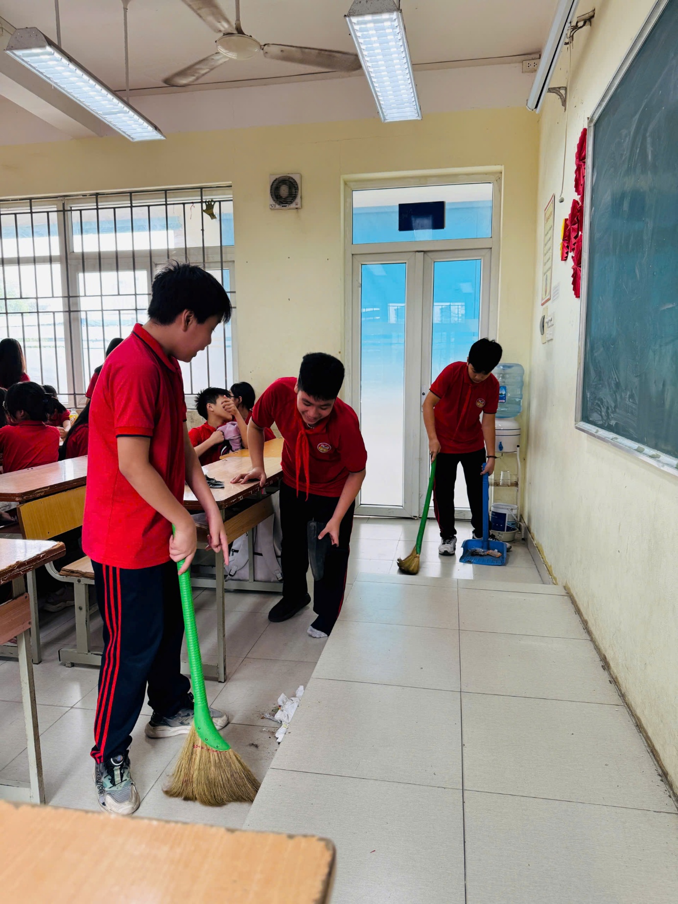 Học sinh các lớp tổng vệ sinh trong và ngoài lớp học