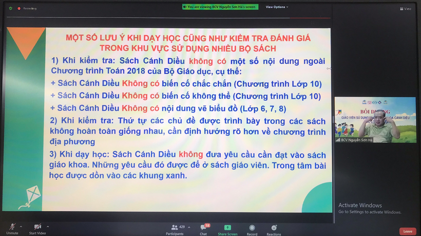 Giáo viên trường THCS Ba Đình tham gia Hội nghị trực tuyến giới thiệu Sách giáo khoa Toán 7 Cánh Diều