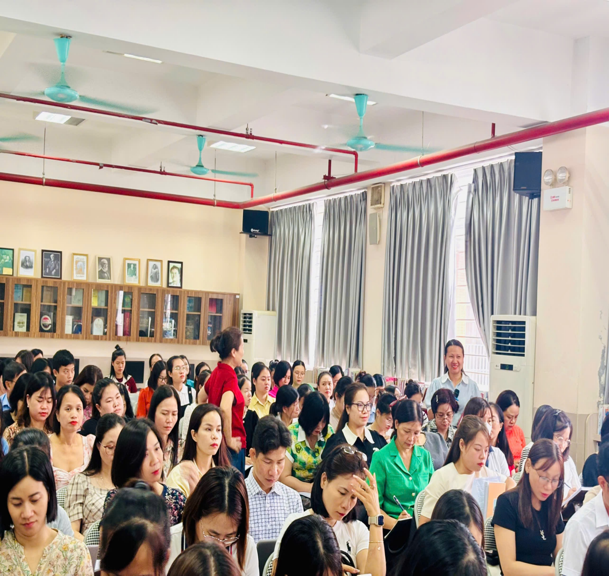 Dưới sự hướng dẫn, chia sẻ của Tiến sĩ Nguyễn Thu Nga đến từ ĐHSP Hà Nội, các giáo viên được lĩnh hội những kiến thức về vai trò, ý nghĩa và cách sử dụng công cụ AI trong việc thiết kế KHDH, kiểm tra đánh giá ở môn GDCD. Ở mỗi nội dung, không chỉ lắng nghe, trao đổi với giảng viên, các giáo viên còn thực hành cách đặt các lệnh cho AI, cách khai thác ngữ liệu, học liệu, thiết kế bài giảng … theo các hình thức khác nhau.