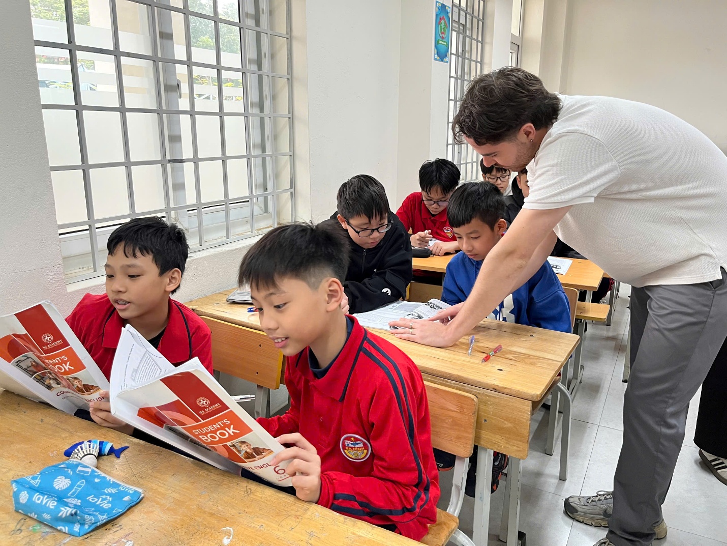 Dưới sự hướng dẫn trực tiếp của giáo viên nước ngoài, các em được tham gia nhiều hoạt động với những hình thức tương tác phong phú. Giáo viên người nước ngoài thường xuyên đặt câu hỏi gợi mở, khuyến khích học sinh phản xạ nghe và nói bằng Tiếng Anh đồng thời tạo điều kiện để học sinh được làm việc theo cặp, theo nhóm, trao đổi và hỗ trợ lẫn nhau. Bên cạnh đó, các hoạt động như hỏi - đáp về khu phố nơi mình sinh sống, mô tả thông qua tranh vẽ; chia sẻ ý kiến cá nhân trước lớp đã giúp học sinh mạnh dạn hơn trong giao tiếp, phát triển kỹ năng nghe - nói một cách tự nhiên.