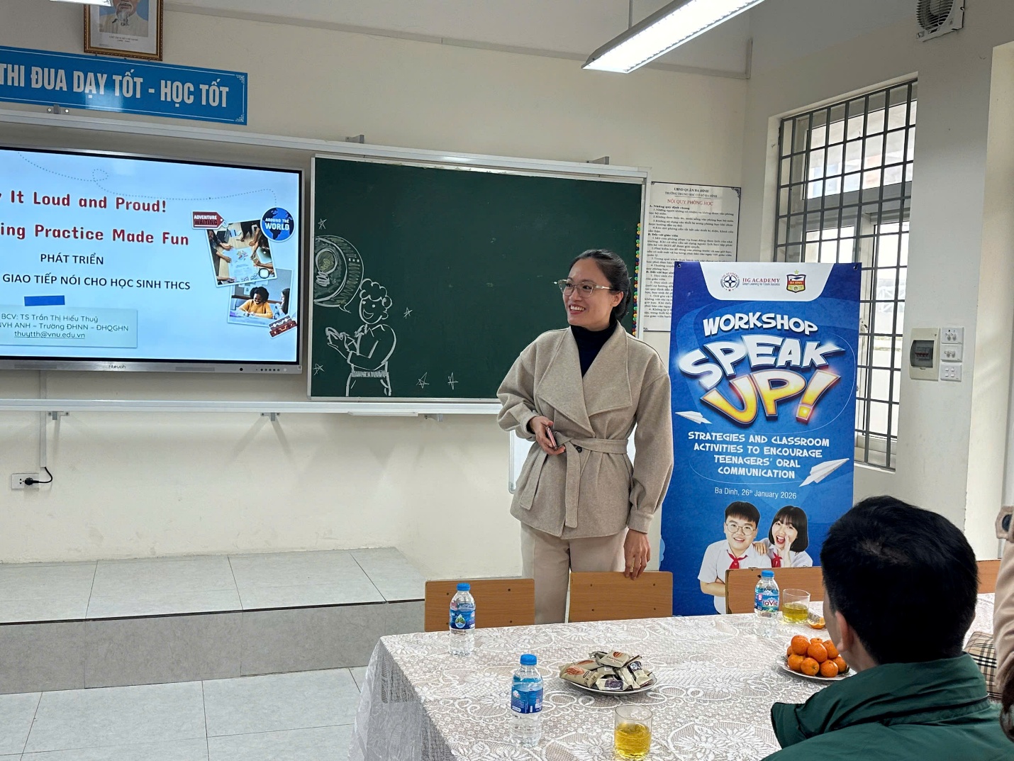 Chiều ngày 26/01/2026, Trường THCS Ba Đình phối hợp với Tổ chức Giáo dục IIG Việt Nam tổ chức hoạt động trao đổi và sinh hoạt chuyên môn thông qua tiết dự giờ Tiếng Anh do giáo viên nước ngoài đảm nhiệm. Hoạt động tiếp nối là buổi sinh hoạt, trao đổi chuyên môn cùng với chuyên gia nhằm góp phần nâng cao hiệu quả giảng dạy và học tập bộ môn Tiếng Anh trong nhà trường.