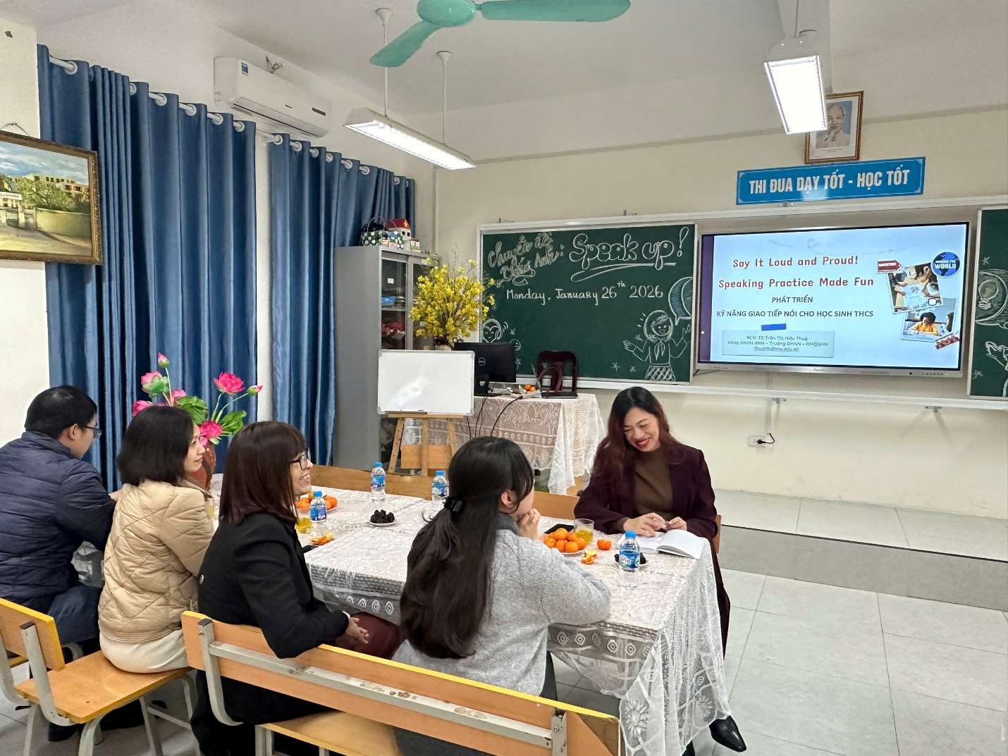 Tại đây, các thầy cô đã cùng nhau phân tích, đánh giá hiệu quả của tiết học, tập trung vào các nội dung như: cách tổ chức hoạt động trên lớp, mức độ phù hợp của chủ đề, khả năng thu hút học sinh tham gia cũng như hiệu quả của các hình thức tương tác giữa giáo viên và học sinh, giữa học sinh với học sinh. Những ưu điểm nổi bật của tiết dạy được ghi nhận đồng thời các ý kiến đóng góp ý đi cùng với việc đề xuất các giải pháp cải tiến cũng được trao đổi thẳng thắn nhằm giúp giáo viên có thêm các kinh nghiệm trong việc giảng dạy bộ môn Tiếng Anh trong thời gian tới.