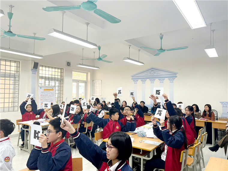 Học sinh tham gia trò chơi Nhanh tay nhanh mắt qua ứng dụng Plicker