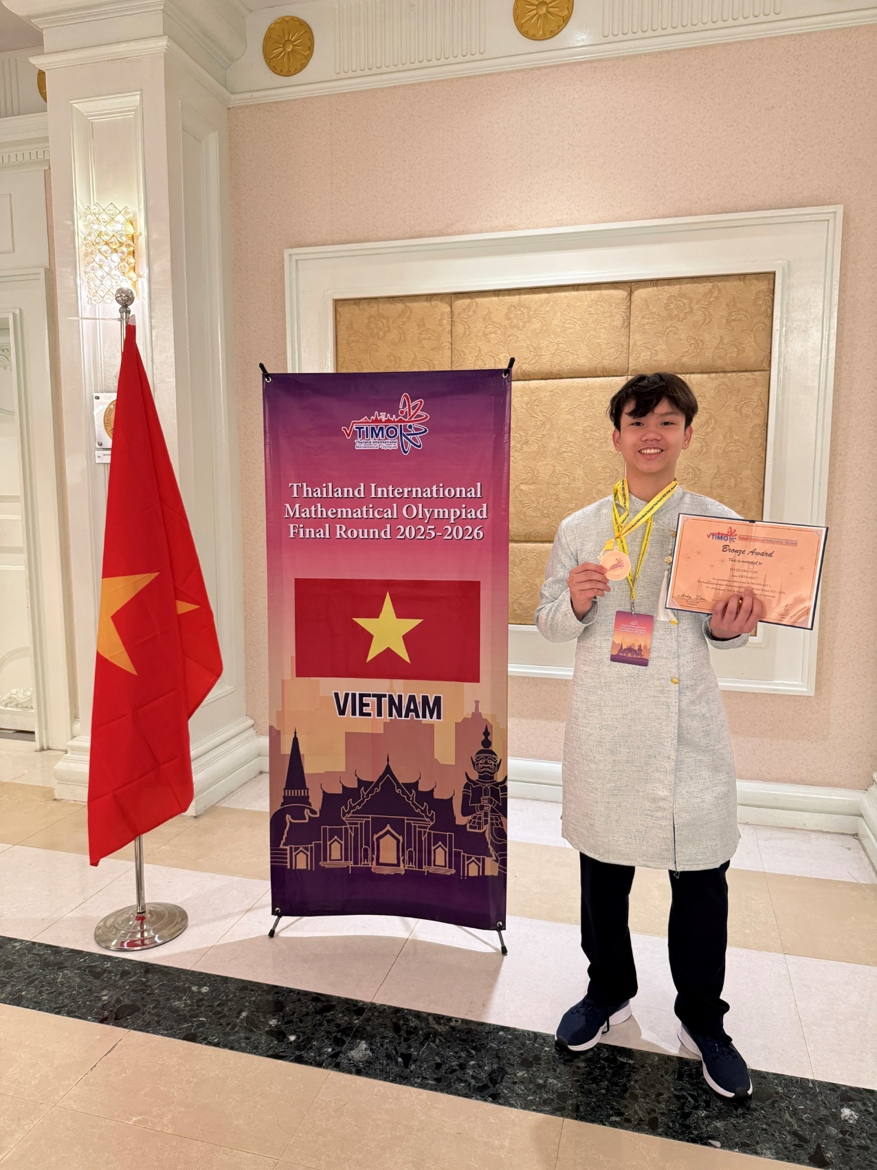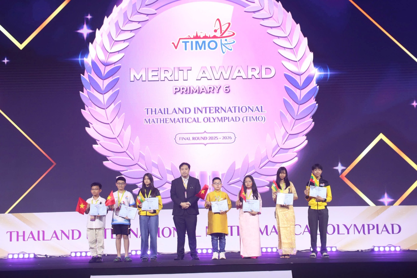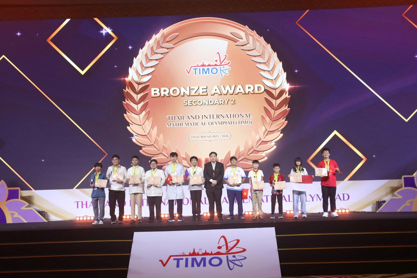 Chiều 08/02/2026, tại đất nước Thái Lan lễ trao giải Cuộc thi Toán quốc tế TIMO năm 2025 - 2026 đã diễn ra trong không khí trang trọng với sự tham gia đông đủ của các con học sinh đạt giải và các bậc phụ huynh từ khắp các quốc gia trên thế giới. Vượt qua hàng nghìn học sinh tiêu biểu từ các nước, học sinh trường THCS Ba Đình cùng toàn đoàn đã ghi dấu ấn mạnh mẽ góp vào thành tích chung của đoàn Việt Nam tại cuộc thi với 01 huy chương Bạc, 01 huy chương Đồng và 01 giải Khuyến khích.