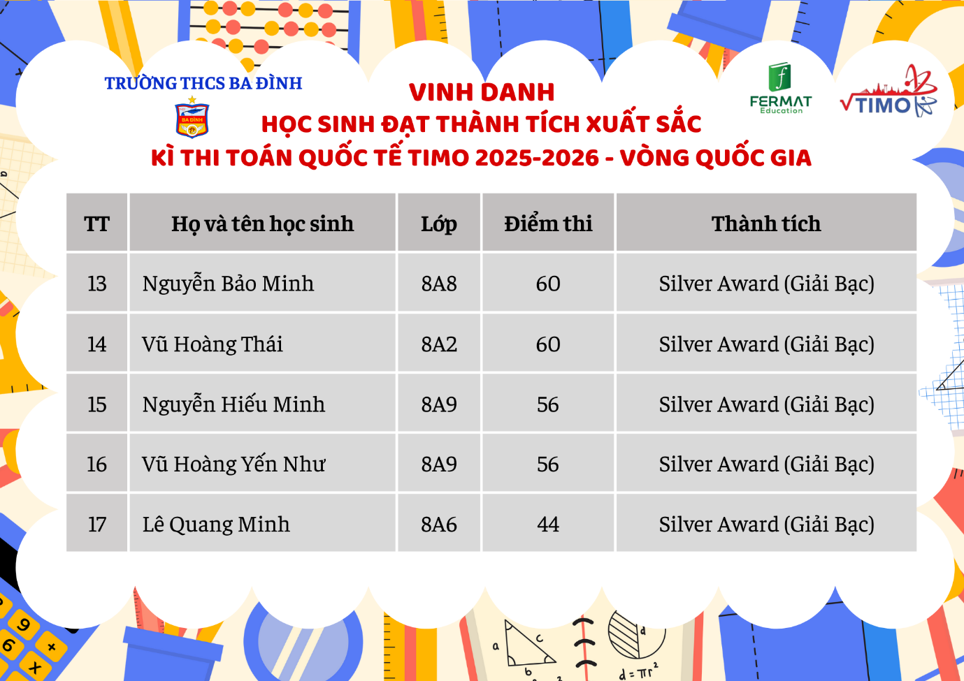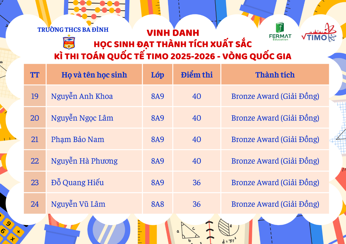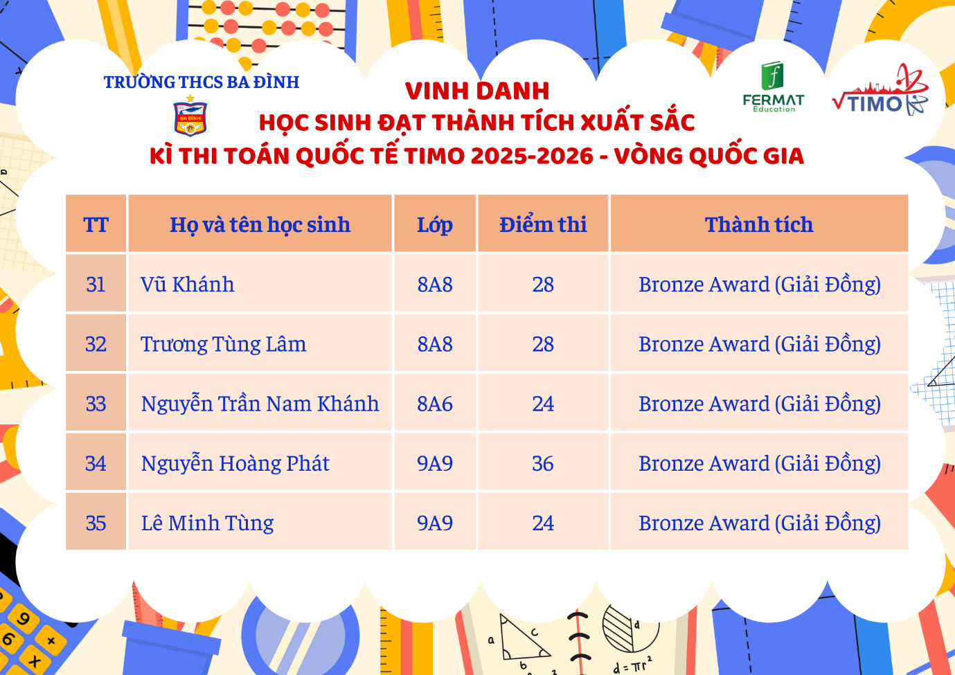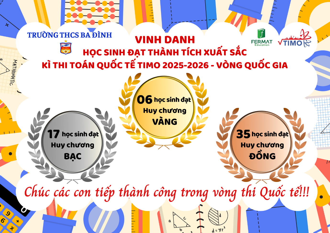 Tự hào thành tích của học sinh trường THCS Ba Đình tại Vòng Quốc gia kỳ thi Toán Quốc tế TIMO 2025-2026