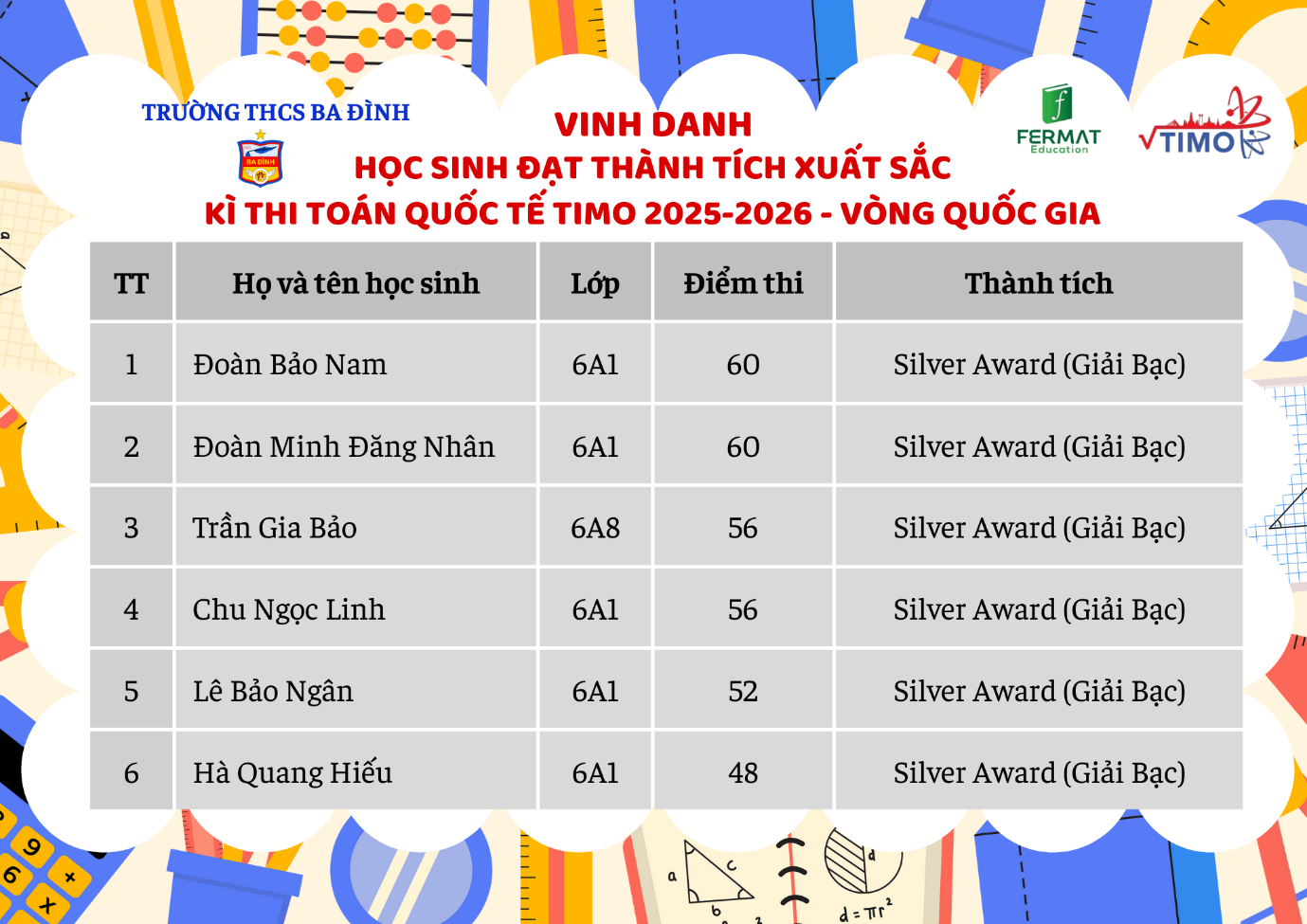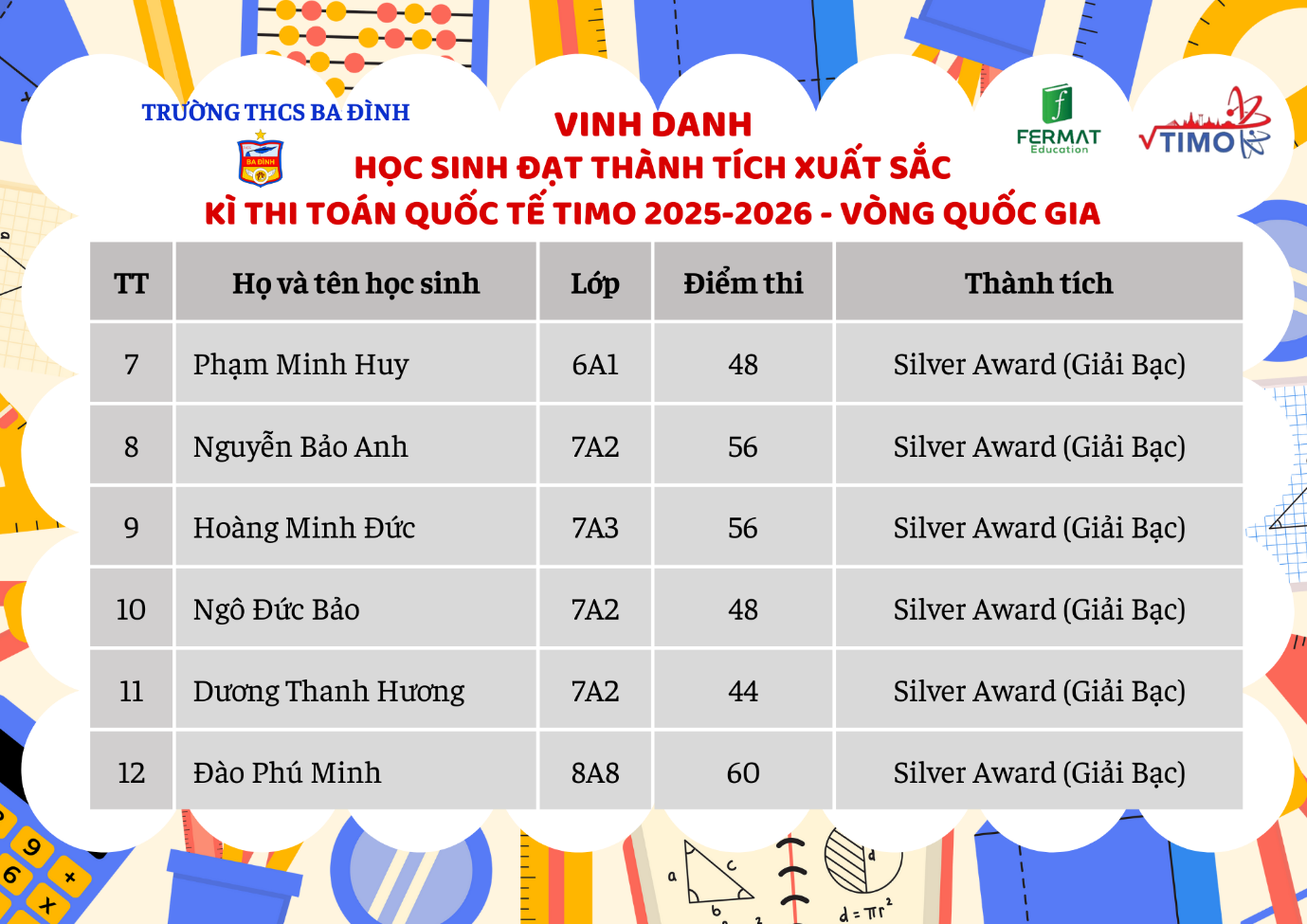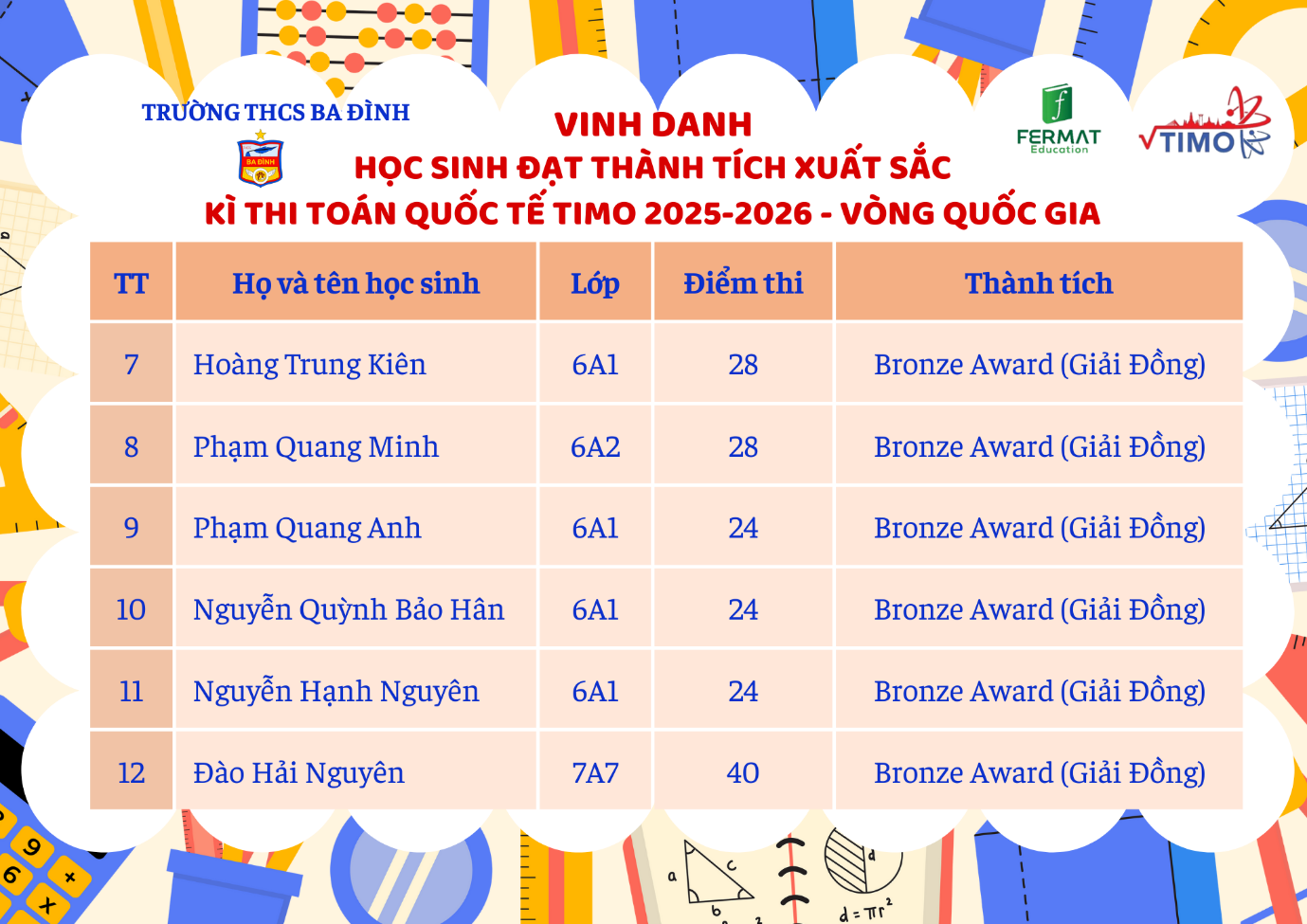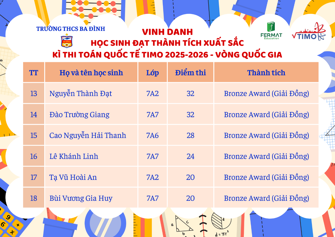 Tự hào thành tích của học sinh trường THCS Ba Đình tại Vòng Quốc gia kỳ thi Toán Quốc tế TIMO 2025-2026