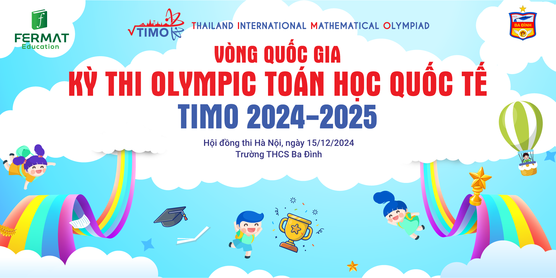 Kỳ thi Olympic Toán học quốc tế TIMO (Thailand International Mathematical Olympiad) được tổ chức hàng năm bởi Trung tâm Giáo dục Vô địch Olympiad Hong Kong (Olympiad Champion Education Centre from Hong Kong) hợp tác cùng Tổ chức Du lịch Thái Lan (Tourism Authority of Thailand). Đây là sân chơi trí tuệ bổ ích dành cho các con học sinh yêu thích và đam mê Toán học các khối lớp từ mẫu giáo đến trung học phổ thông, nhằm kích thích và nuôi dưỡng niềm yêu thích toán học của giới trẻ, tăng cường khả năng tư duy sáng tạo của học sinh, không chỉ vậy kỳ thi còn mở rộng, tăng cường mối quan hệ giao lưu Văn hóa quốc tế. Năm học 2024-2025, kỳ thi TIMO được tổ chức lần thứ 11 trên thế giới và tổ chức lần thứ 6 tại Việt Nam.