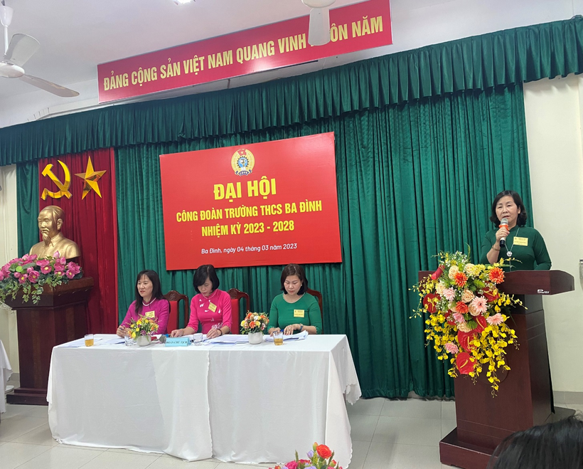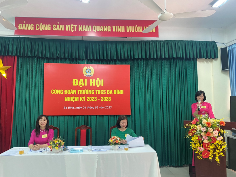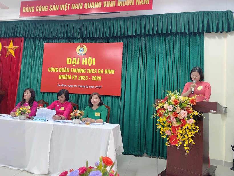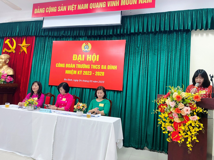 Phát biểu tại Đại Hội, đồng chí Đặng Thị Ngọc Hường - Bí thư Chi bộ, Hiệu trưởng nhà trường cho rằng BCH Công đoàn là điểm tựa, là nơi san sẻ những khó khăn, những căng thẳng, áp lực của Ban giám hiệu, các tổ chuyên môn cũng như của từng cán bộ, giáo viên, công nhân viên nhà trường trong các hoạt động chuyên môn, các công tác đoàn thể của mình. BCH Công đoàn xin tiếp thu những ý kiến đóng góp quý báu của đồng chí Hiệu trưởng để góp phần xây dựng công đoàn trường THCS Ba Đình càng thêm vững mạnh.