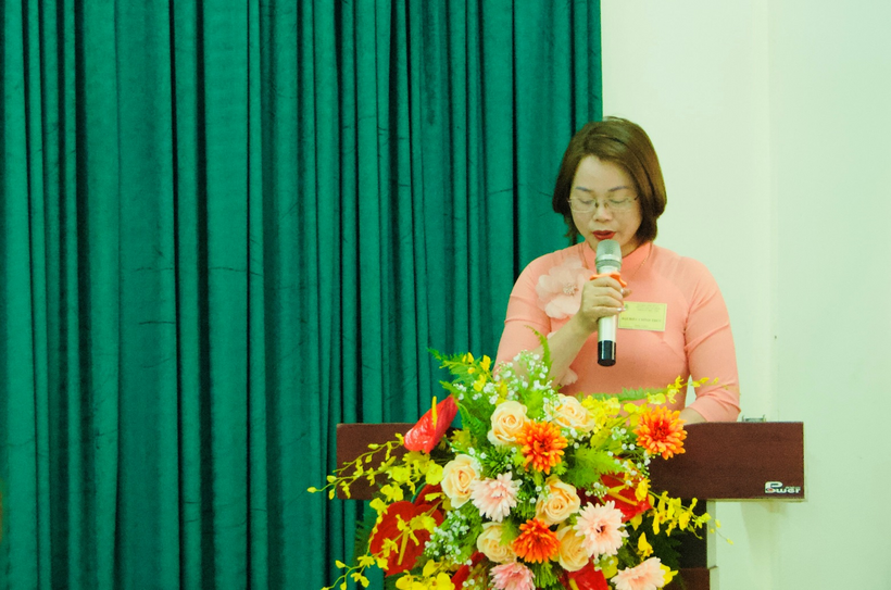 Đồng chí Đặng Thị Ngọc Hường - Bí thư Chi bộ, Hiệu trưởng nhà trường phát biểu tại Đại hội