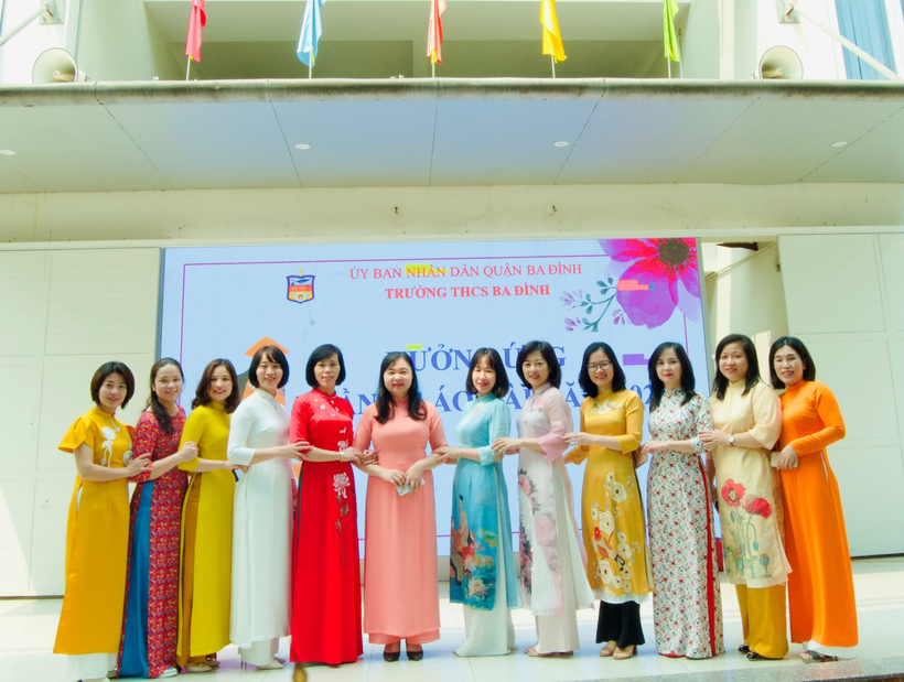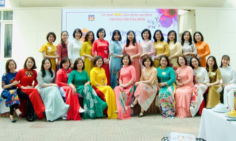 Để góp phần lan tỏa việc bảo tồn và phát huy những giá trị tốt đẹp của chiếc áo dài truyền thống của người Việt Nam và hưởng ứng "Tuần lễ áo dài" năm 2023, tập thể giáo viên trường THCS Ba Đình cùng nhau mặc những chiếc áo dài thướt tha, cùng nhau chụp những bức ảnh, ghi lại những khoảnh khắc đẹp và tươi sáng bên nhau. Qua đó, cũng nhằm tuyên truyền đến các bậc phụ huynh học sinh vẻ đẹp và ý nghĩa của tà áo dài Việt Nam.