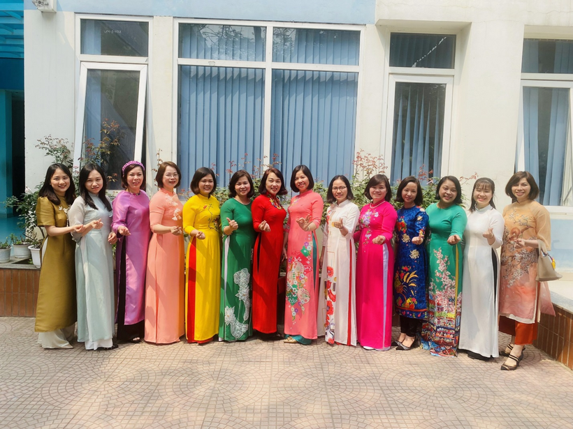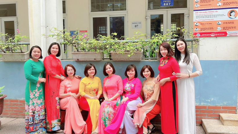 Những cô giáo tổ Tự nhiên 1 thướt tha với tà áo dài