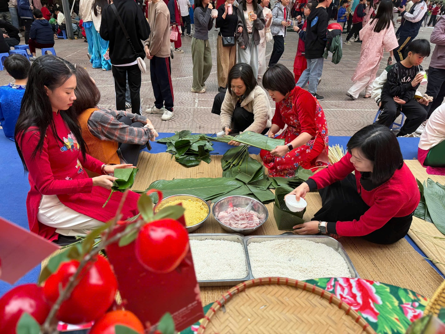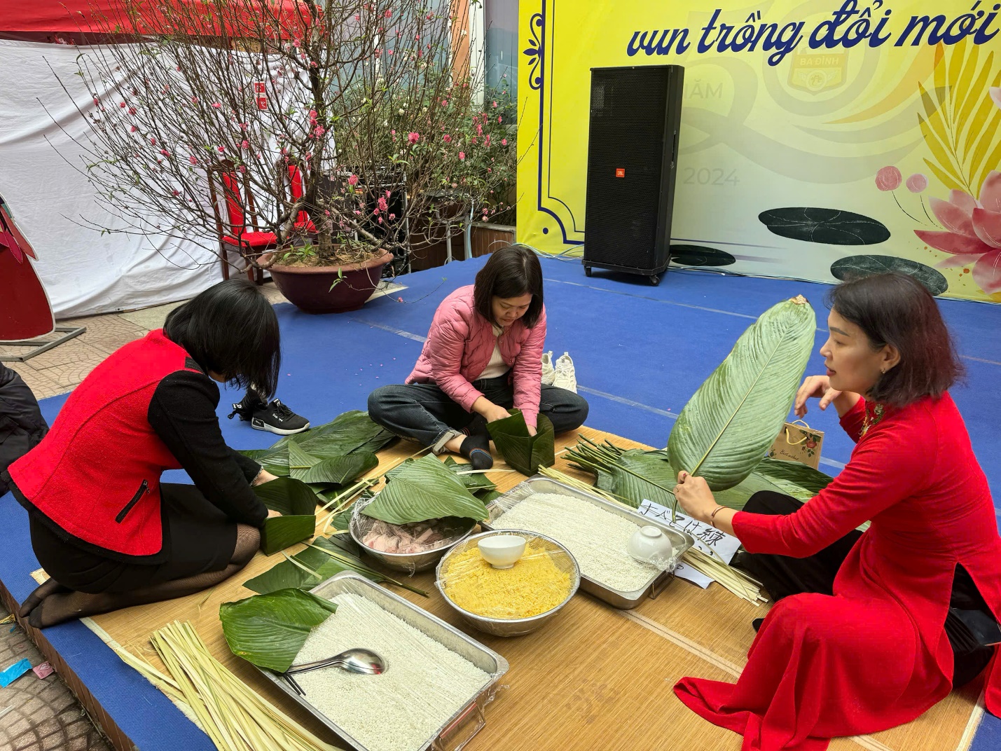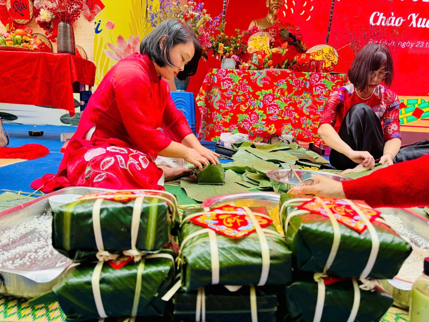Hội thi đã thu hút các tổ chuyên môn tham gia hào hứng và tích cực. Trong không khí đầm ấm, ngay từ sáng sớm, các đội tham gia thi đã chủ động phân công nhiệm vụ cụ thể tới từng thành viên: người chuẩn bị lá dong, lạt; người chuẩn bị thực phẩm; người tham gia gói bánh… Sau khi tham gia gói từng chiếc bánh chưng với niềm yêu thương và gửi gắm những thông điệp xuân vào những chiếc bánh chưng xanh, các đội đã trình bày bàn cỗ với nhiều ý tưởng đẹp, phong phú, đậm đà văn hoá truyền thống Việt Nam. Ban Giám khảo đã đi từng bàn, chấm điểm bánh chưng theo tiêu chí: đúng kích thước, đủ số lượng, vuông thành, chắc tay, chấm phần bày biện trang trí trên mâm cỗ ngày Tết, thuyết trình thu hút và thuyết phục người nghe, chụp ảnh lưu niệm để làm tư liệu quý cho Công đoàn Nhà trường. Quả là một không khí thi đua vô cùng phấn khởi và có lẽ trong lòng mỗi đội tham gia thi đều cảm thấy vui vẻ, hào hứng.