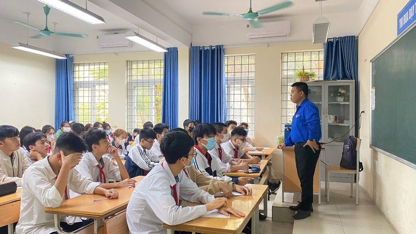 Cô Trương Châu Giang - Phó Hiệu trưởng nhà trường phát biểu tại lớp học cảm tình Đoàn
