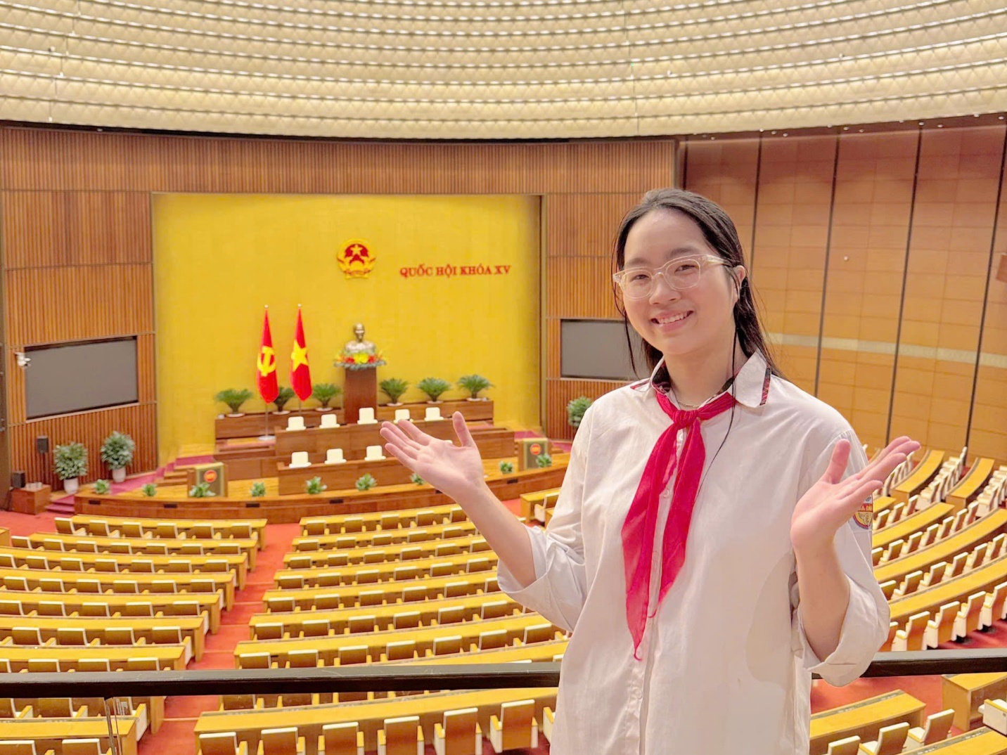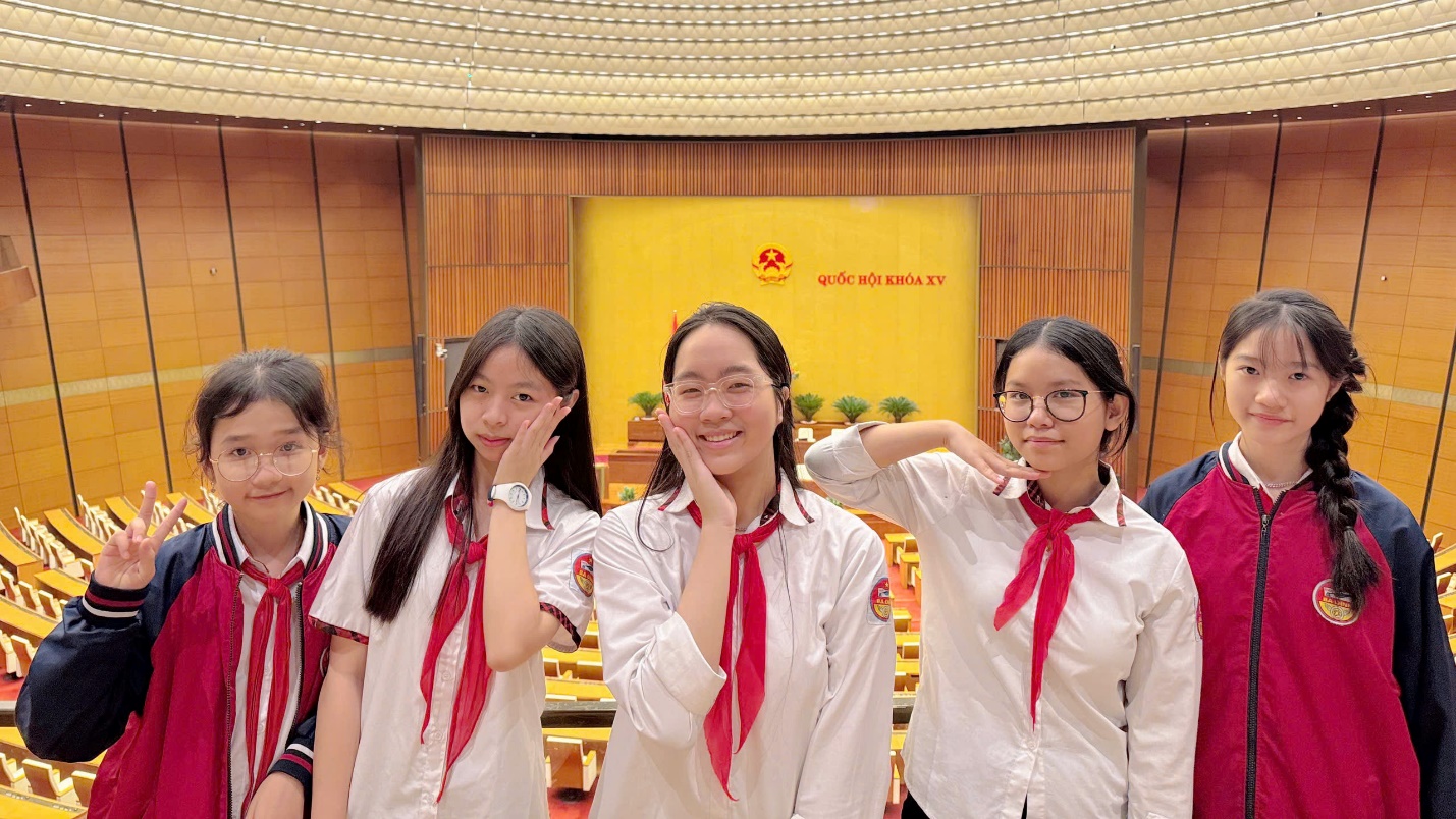 “Đây là lần đầu tiên con được tham quan tòa nhà Quốc hội. Con ấn tượng nhất khi được tham quan phòng họp Diên Hồng. Đây thực sự là phòng họp hoành tráng nhất mà con từng được xem”, học sinh Bùi Trần Diệp Anh – Liên đội trưởng, tỏ ra vô cùng thích thú khi lần đầu tiên được tận mắt chiêm ngưỡng phòng họp Diên Hồng – nơi tổ chức các kỳ họp Quốc hội mà trước giờ chỉ được theo dõi trên ti vi.
