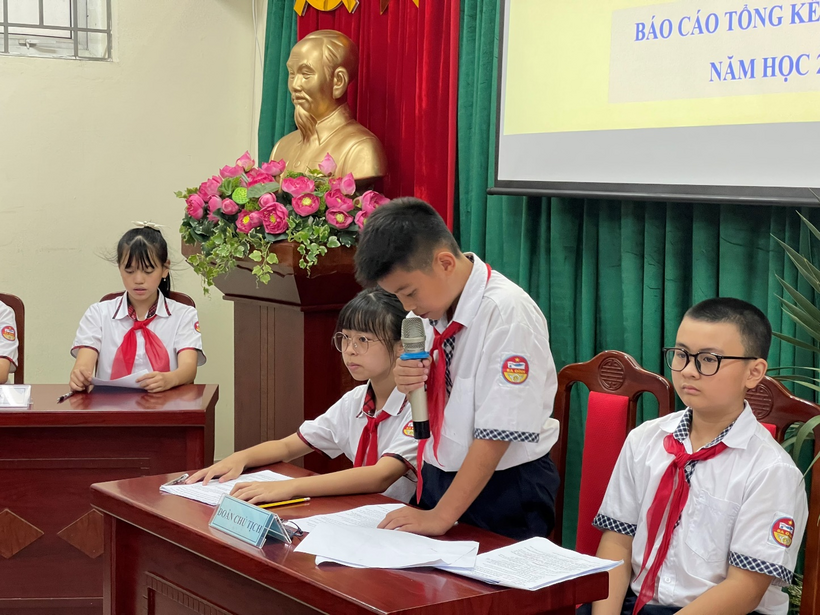 Đại diện Ban chỉ huy Chi đội báo cáo tổng kết hoạt động đội năm học 2021 - 2022