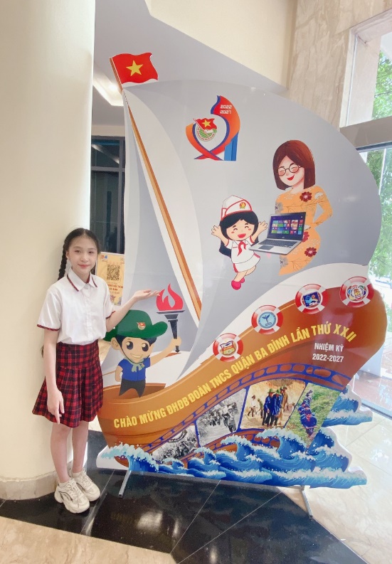 Tại đây, em Nguyễn Ngọc Khánh - học sinh lớp 7A5, trường THCS Ba Đình đã diện cho học sinh của trường THCS Ba Đình, THCS Thành Công, THCS Thực Nghiệm, THCS Thống Nhất thuyết trình về sản phẩm mô hình sáng tạo của đội. Mô hình là con thuyền với cánh buồm giương cao tượng trưng cho những khát vọng, ước mơ của tuổi trẻ. Đặc biệt trên con thuyền ấy là hình ảnh người đoàn viên thanh niên đang dơ cao ngọn đuốc với ý chí quyết tâm cao độ “Đâu cần thanh niên có, đâu khó có thanh niên”. Đồng thời, hình ảnh lá cờ đỏ sao vàng bay phấp phới thể hiện niềm tự hào về dân tộc Việt Nam anh hùng, trải qua bao cuộc đấu tranh để bảo vệ tổ quốc. Để rồi nhắc nhở thế hệ thanh thiếu niên không ngừng cố gắng học tập, rèn luyện góp phần xây dựng đất nước ngày càng giàu đẹp hơn.