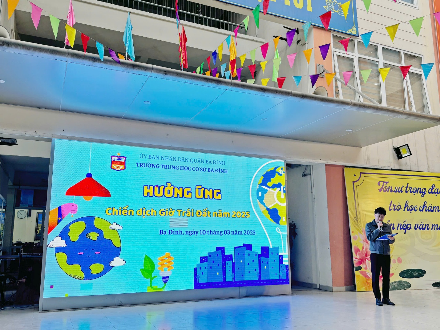 Sáng ngày 10/3/2025, trường THCS Ba Đình phát động hưởng ứng Chiến dịch Giờ Trái Đất năm 2025 nhằm nâng cao nhận thức của giáo viên và học sinh về sử dụng hiệu quả các nguồn tài nguyên, bảo vệ môi trường, hướng tới một Trái Đất xanh - sạch - đẹp.