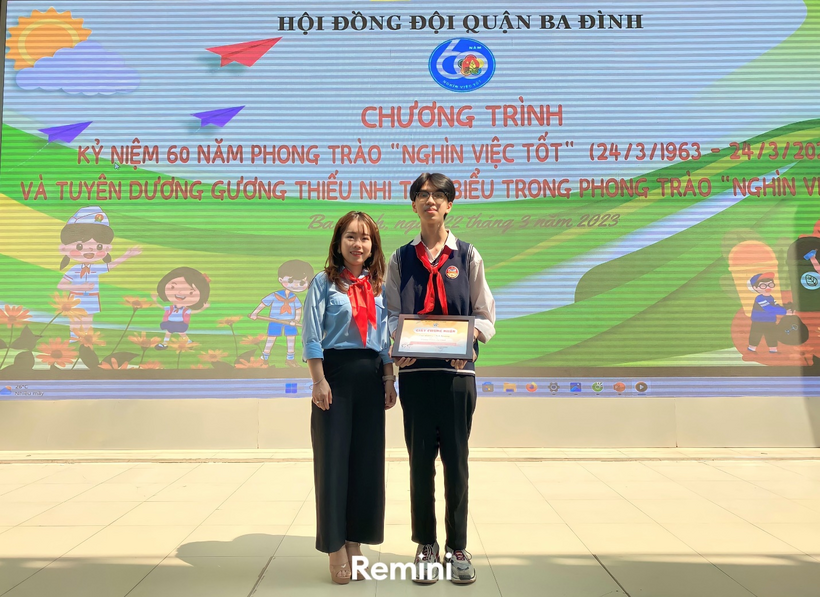 Chúc mừng Anh Quang đã được nhiều thành tích đáng khen ngợi. Hi vọng với sức trẻ, lòng nhiệt huyết, Anh Quang sẽ tích cực làm nhiều việc tốt hơn nữa và lan tỏa những nghĩa cử cao đẹp, việc làm nhân ái, ngập tràn tình yêu thương đến tất cả các bạn đội viên trường THCS Ba Đình. Đồng thời, mỗi đội viên hãy hiện thực hóa ước mơ cao đẹp với khát vọng cống hiến, xứng đáng là những chủ nhân tương lai của đất nước, góp phần đưa đất nước ta “Sánh vai với các cường quốc năm châu” như Bác Hồ kính yêu hằng mong ước./.