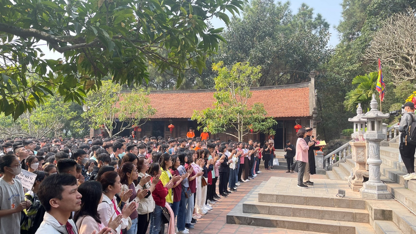 Lễ dâng hương của tập thể nhà trường tại đề thờ Chu Văn An