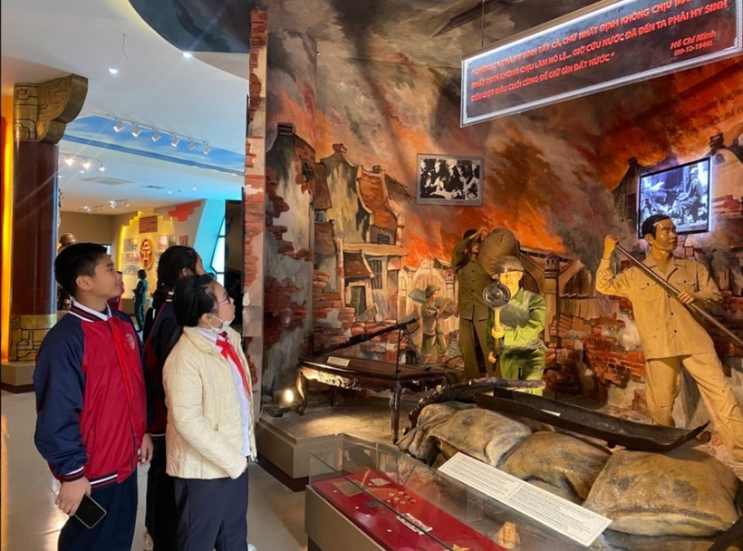 Vào khu trưng bày trong nhà, các em được tìm hiểu khái quát về truyền thống của lực lượng vũ trang Thủ đô Hà Nội qua các thời kỳ, đặc biệt là chiến thắng “Hà Nội-Điện Biên Phủ trên không”, với nhiều hiện vật, tài liệu, các tác phẩm “Mãi mãi tuổi hai mươi” của Nguyễn Văn Thạc, Nhật ký Đặng Thùy Trâm... Đặc biệt hơn cả là phòng sa bàn tổng hợp diễn biến chiến đấu trong 12 ngày đêm tháng 12/1972.