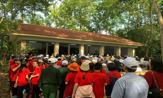 Học sinh và giáo viên nhà trường tham quan một số địa điểm tại khu di tích sau lễ báo công
