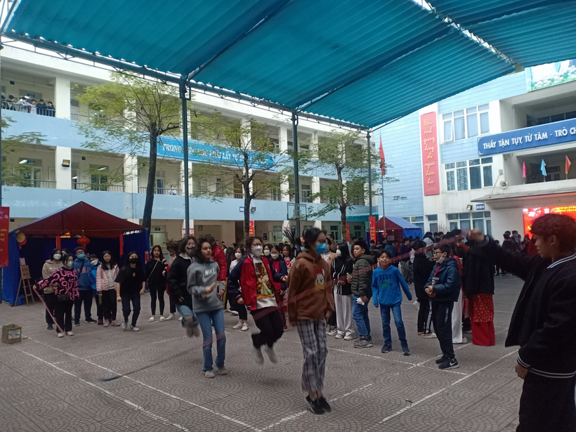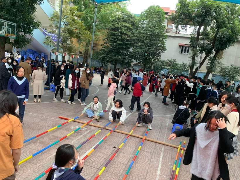Ngoài ra vẫn còn rất nhiều trò chơi bổ ích, lí thú nữa, rất đáng để chơi. Ngay tại sân trường, những âm thanh vang lên rộn rã: tiếng nhạc, tiếng nói cười náo nức, tiếng hò reo hay tiếng cổ vũ khi tham gia vào các hoạt động trò chơi dân gian. Ai nấy cũng đều vui mừng, phấn khởi trong niềm vui,niềm hạnh phúc. Các bạn tham gia rất nhiều và vô cùng nhiệt tình. Ôi, quả thật là một bầu không khí náo nhiệt biết bao! Nhất là mỗi lượt chơi đều có quà là những phong bao lì xì may mắn.