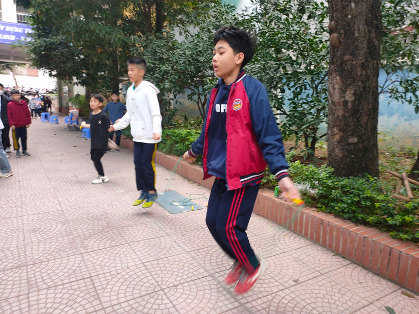 Nhảy dây là trò chơi dân gian có từ lâu đời, được các bạn gái ở độ tuổi thiếu niên nhi đồng yêu thích. Tranh thủ lúc rỗi rãi ở nhà hoặc giờ ra chơi ở trường, dăm ba bạn, một sợi dây thừng hoặc dây thun và khoảng đất đủ rộng là trò chơi có thể bắt đầu. Và hôm nay, chúng em được chơi nhiều hơn, thoải mái hơn so với 15 phút ra chơi mọi ngày.