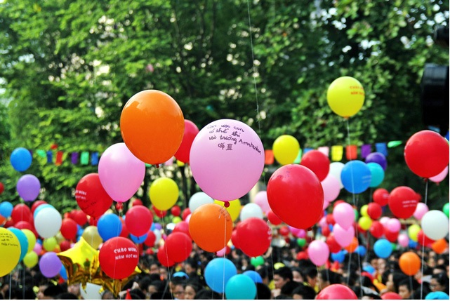 Tiếng trống trường đã vang lên làm náo nức những con tim, như bước chân thúc giục rộn ràng. Sau tiếng trống khai trường, các con học sinh đã thả bóng để bay lên ước mơ một năm học mới nhiều thành công.