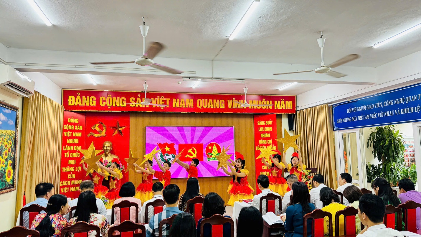 Mở đầu chương trình là các tiết mục văn nghệ vô cùng hấp hẫn đến từ các các Đảng viên trong Chi bộ và các em học sinh trường THCS Ba Đình.