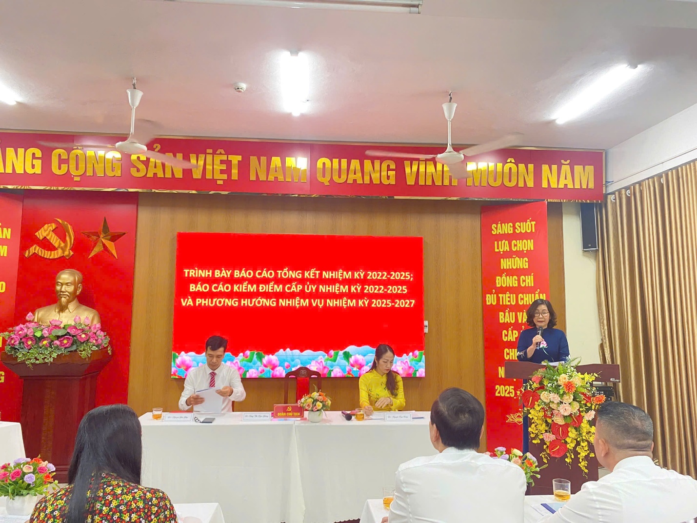 Đồng chí Đặng Thị Ngọc Hường - Bí thư Chi bộ trình bày Báo cáo tổng kết hoạt động của Chi bộ nhiệm kỳ 2022-2025;
