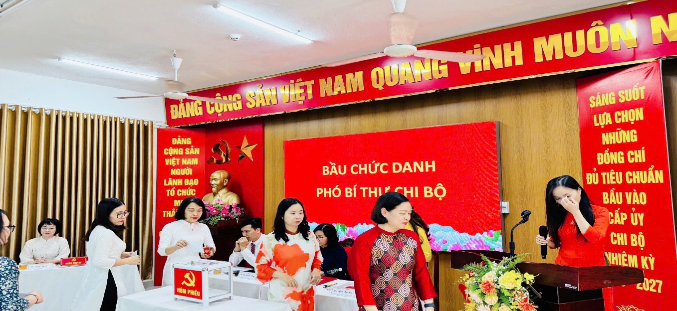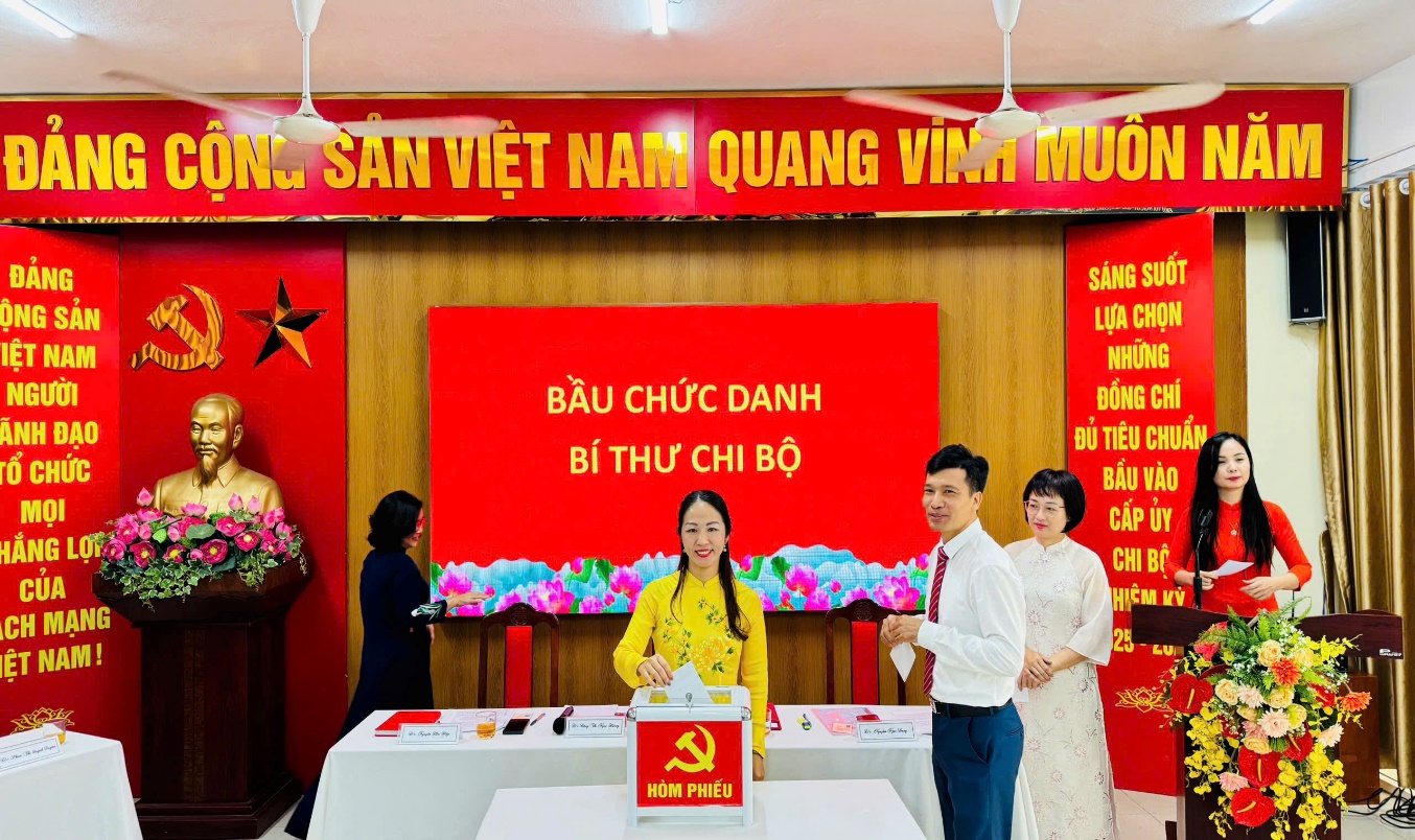 Tiếp theo chương trình, Đại hội đã tiến hành bầu cấp ủy Chi bộ trường THCS Ba Đình nhiệm kỳ 2025-2027 với 5 đồng chí trúng cử: Đồng chí Đặng Thị Ngọc Hường, Nguyễn Hữu Hiệp, Nguyễn Ngọc Dung, Lương Bích Hường và Nguyễn Bích Thủy. Bên cạnh đó, Đại hội cũng tiến hành các thủ tục bầu chức danh Bí thư Chi bộ, Phó bí thư Chi bộ nhiệm kỳ 2025 - 2027, kết quả bầu cử: Đồng chí Đặng Ngọc Hường đã được tín nhiệm bầu giữ chức Bí thư Chi bộ trường THCS Ba Đình, Đồng chí Nguyễn Hữu Hiệp đã được tín nhiệm bầu giữ chức phó Bí thư nhiệm kỳ 2025 - 2027.