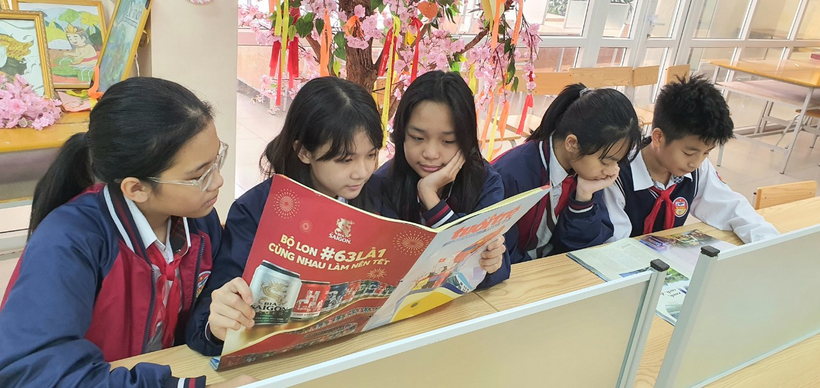 Học sinh đọc báo Tết tại phòng Thư viện nhà trường