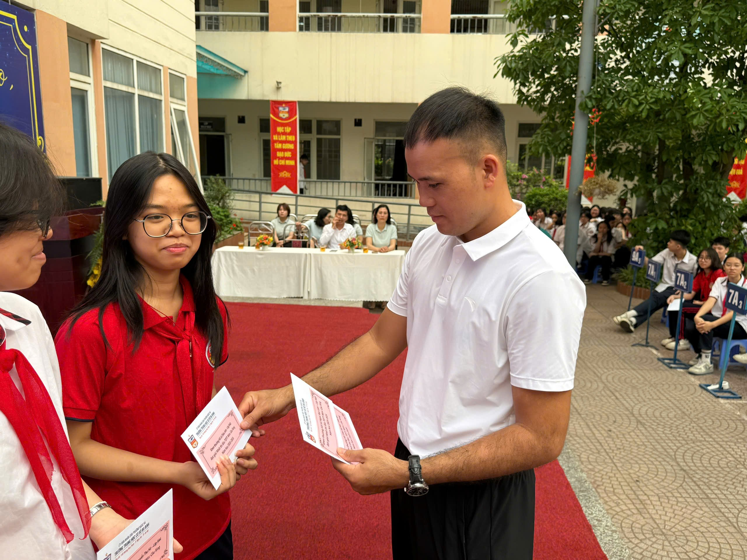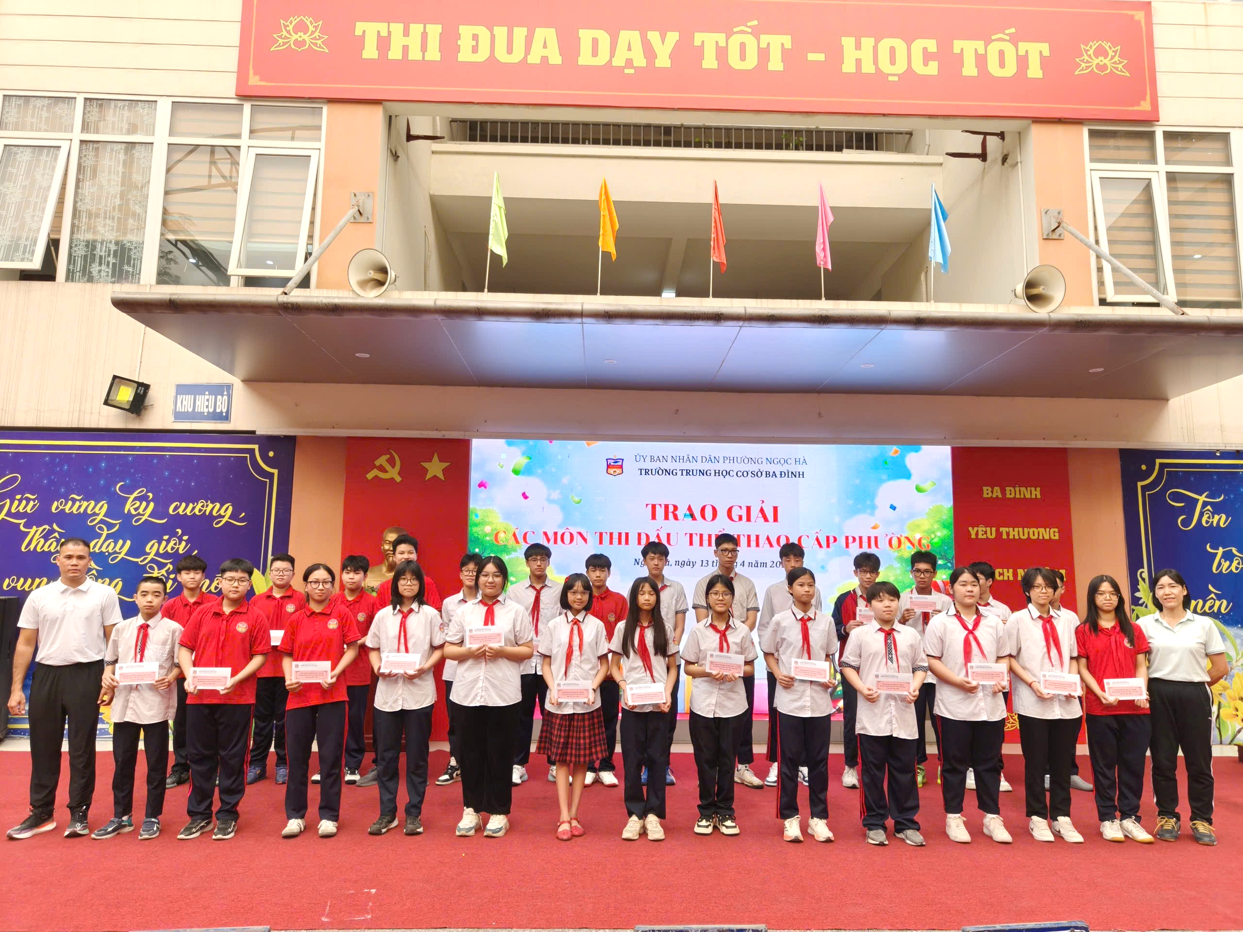 Sáng 13/4, tại Trường THCS Ba Đình, chương trình trao giải các môn thể thao cấp phường đã diễn ra trong không khí trang trọng, sôi nổi và đầy tự hào. Buổi lễ không chỉ là dịp vinh danh những nỗ lực bền bỉ, tinh thần thi đấu quyết tâm của học sinh sau những ngày tranh tài sôi động, mà còn ghi nhận thành tích xuất sắc với tổng cộng 11 Huy chương Vàng, 6 Huy chương Bạc và 1 Huy chương Đồng, khẳng định rõ nét chất lượng giáo dục toàn diện của nhà trường.