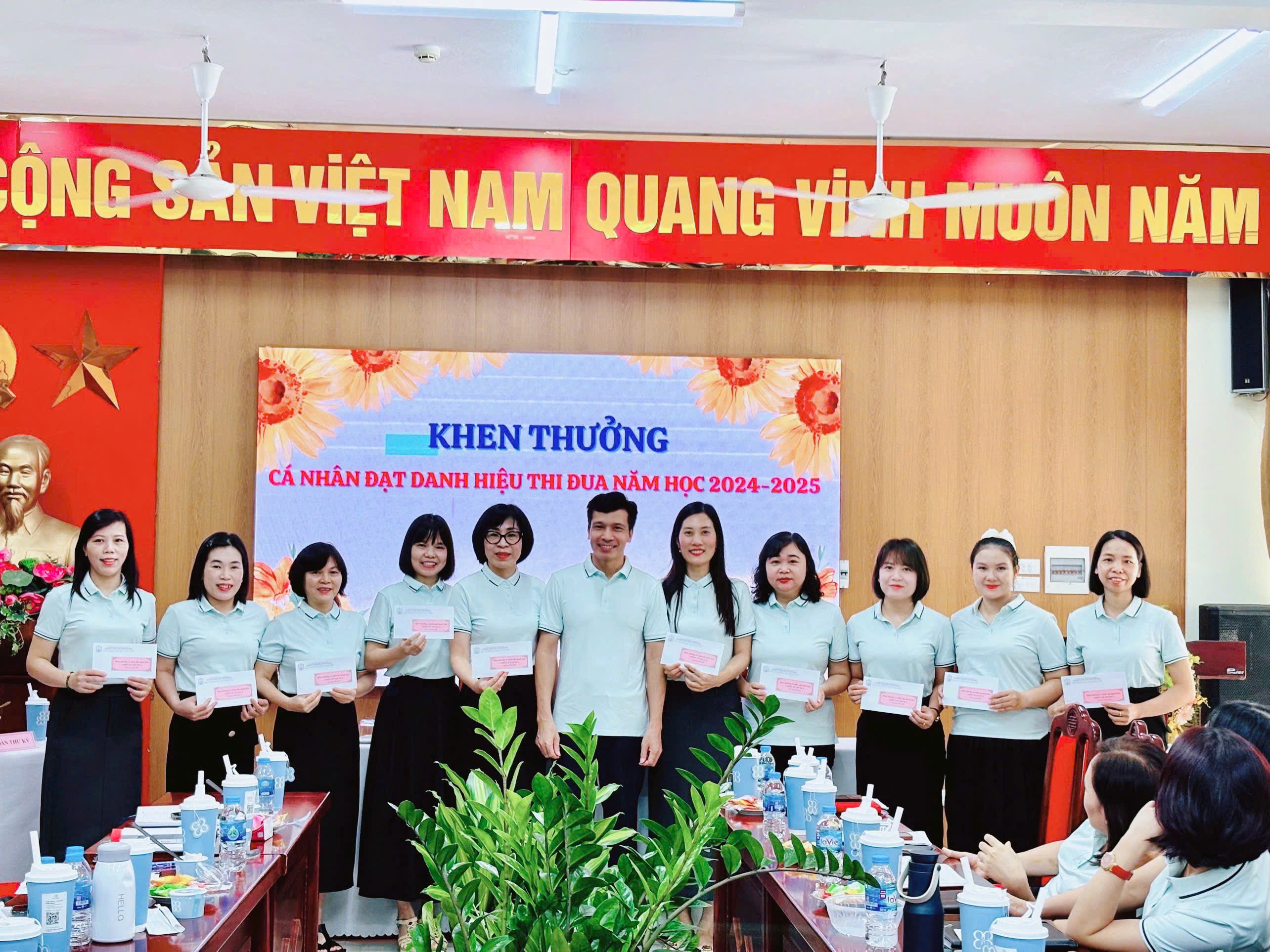 Nhằm ghi nhận những đóng góp tích cực của đội ngũ giáo viên trong năm học 2024 - 2025, Ban Giám hiệu nhà trường đã trao tặng giấy khen cho các cá nhân đạt danh hiệu Chiến sĩ thi đua và Lao động tiên tiến. Những phần thưởng không chỉ là sự khích lệ mà còn là nguồn động lực to lớn để mỗi cán bộ, giáo viên tiếp tục cống hiến, góp phần thực hiện thắng lợi nhiệm vụ năm học mới.