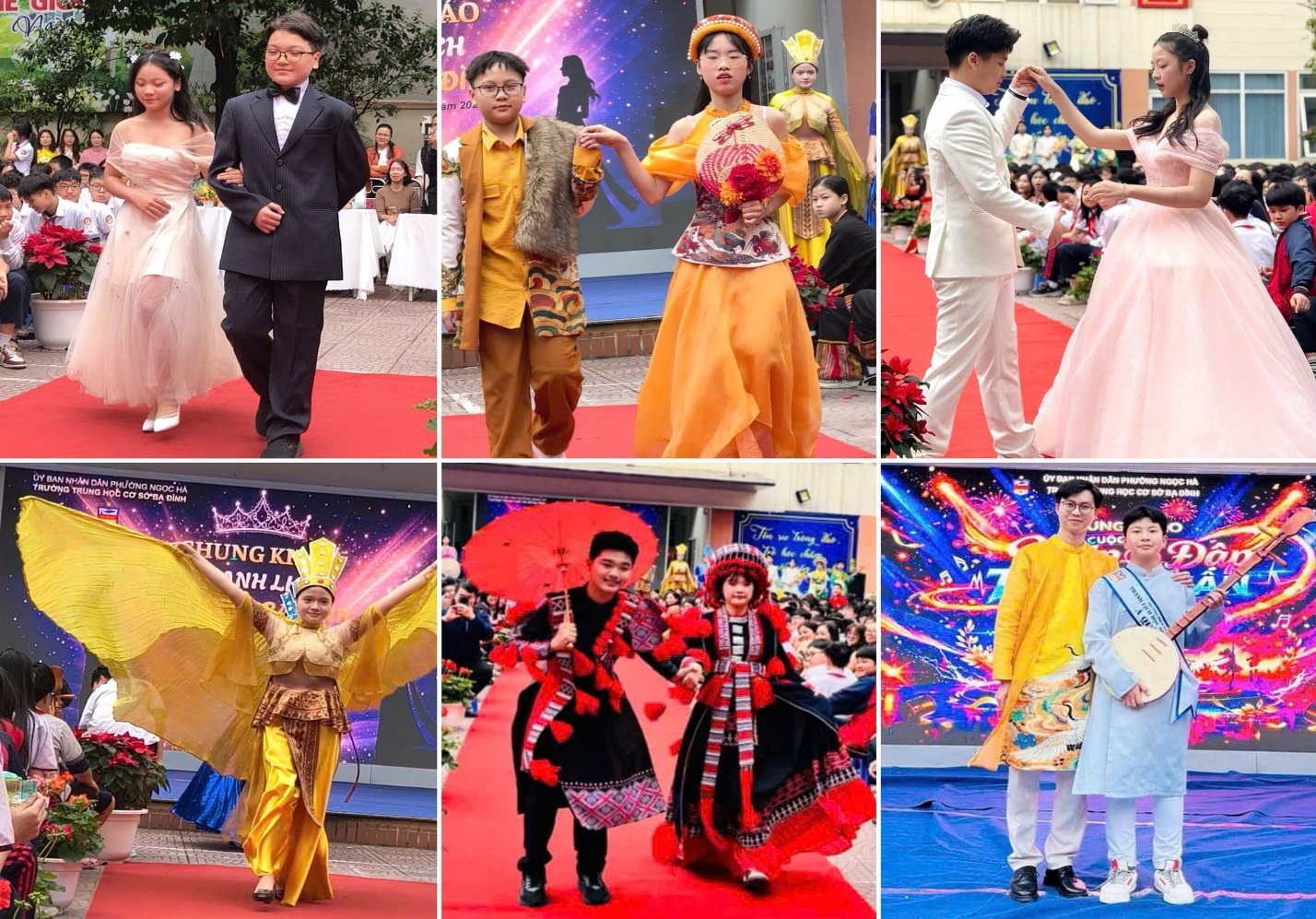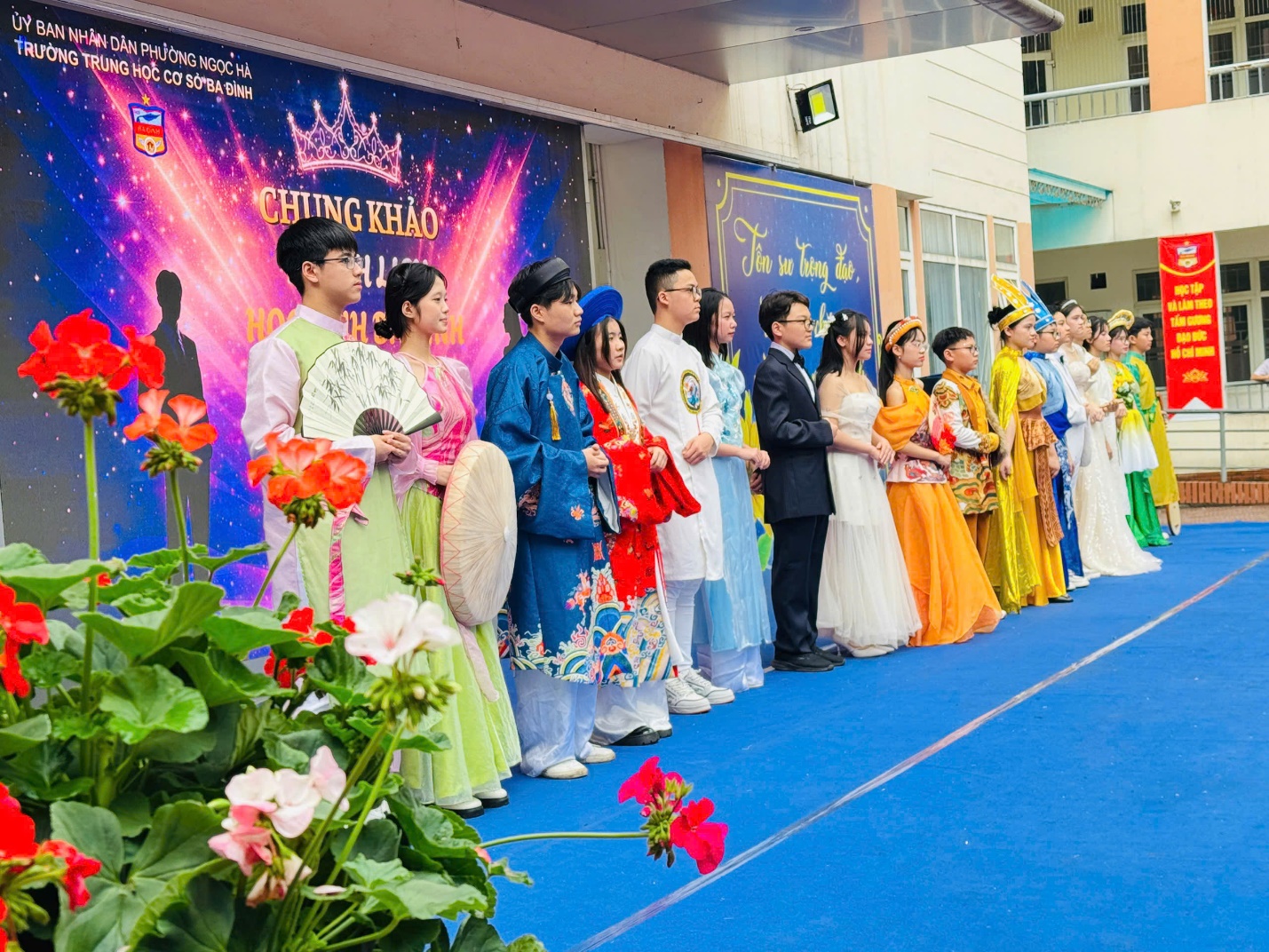Trải qua vòng Sơ khảo đầy cạnh tranh, cuộc thi đã tìm ra 12 cặp đôi xuất sắc nhất đến từ các chi đội: 6A1, 6A2, 6A8, 7A2, 7A6, 7A9, 8A1, 8A2, 8A7, 9A3, 9A7 và 9A8 để bước vào Chung khảo. Mở màn bằng phần thi Trang phục tự chọn, 12 cặp đôi đã sải bước tự tin, mang đến sân khấu một "bữa tiệc" thị giác mãn nhãn. Mỗi bộ trang phục không đơn thuần chỉ là vóc dáng bên ngoài, mà còn là sự sáng tạo nhằm tôn vinh vẻ đẹp, màu sắc và dấu ấn văn hóa của dân tộc. Từng bước đi mượt mà, duyên dáng của các em chính là minh chứng cho sự trân trọng và ý thức gìn giữ cội nguồn.