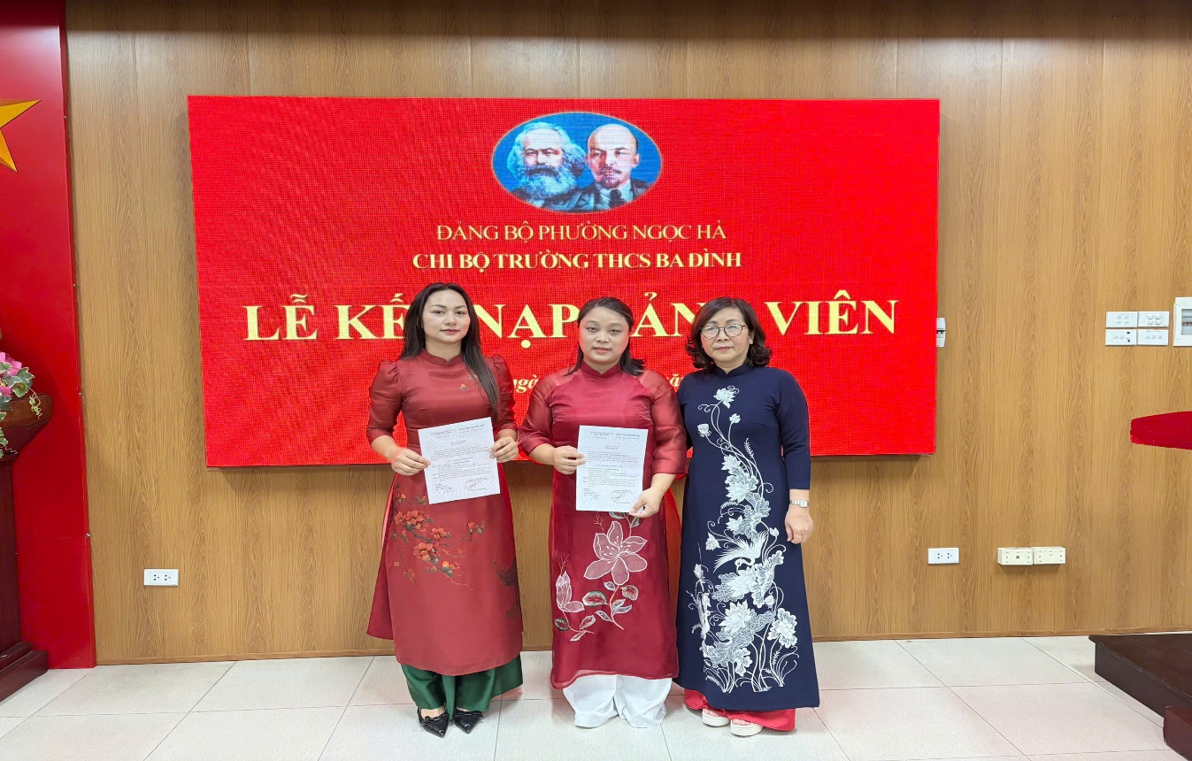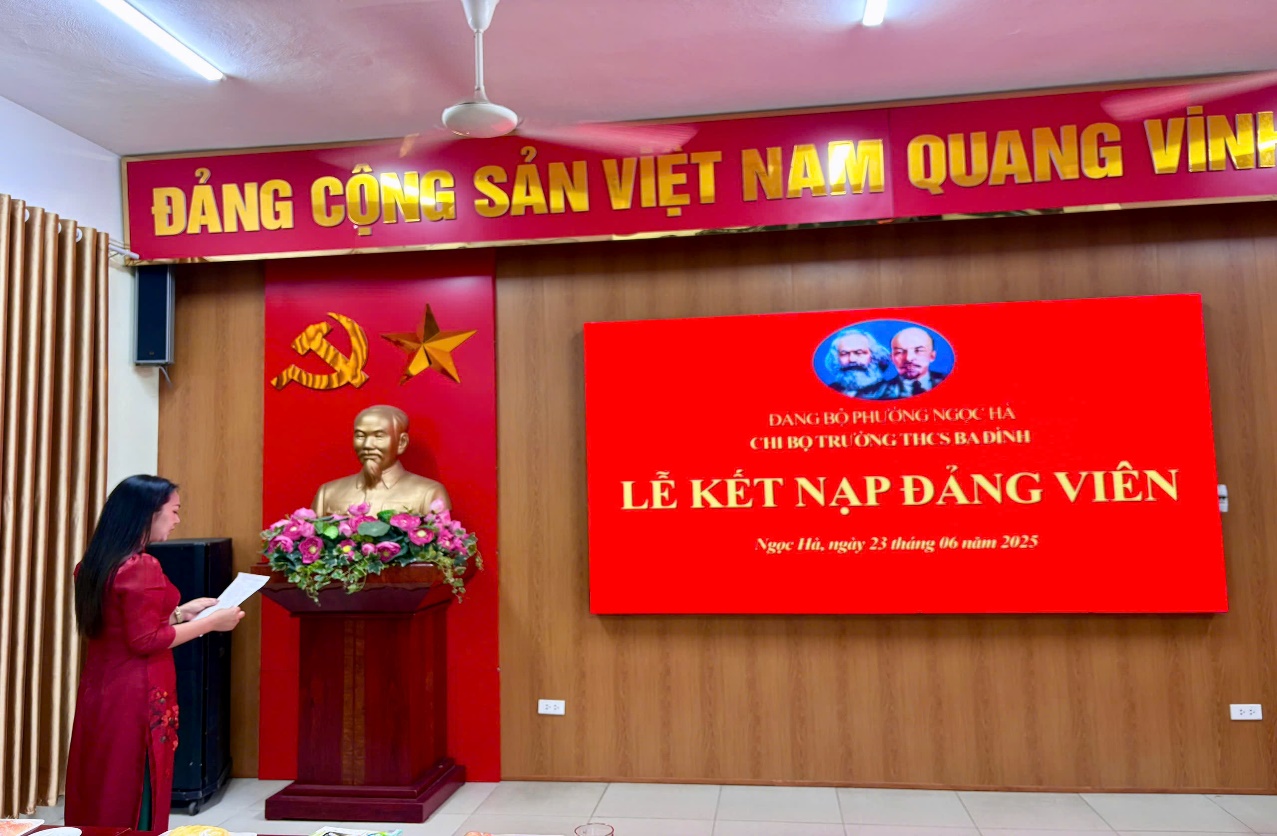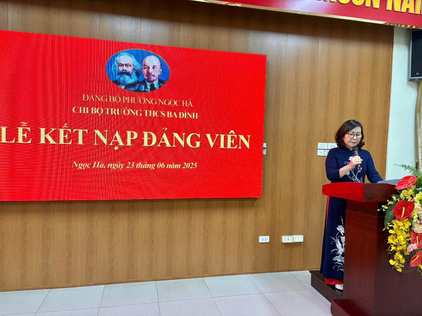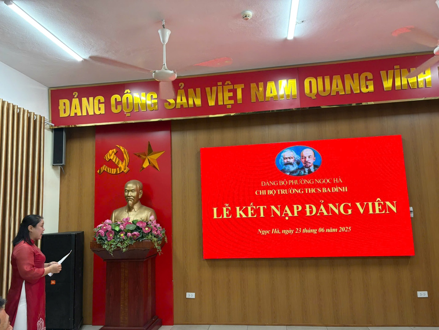 Thực hiện nghị quyết của Quận uỷ Ba Đình, Đảng uỷ phường Ngọc Hà và nghị quyết của Chi bộ trường THCS Ba Đình, sáng ngày 23/6/2025, Chi bộ trường THCS Ba Đình đã tổ chức Lễ kết nạp Đảng viên năm 2025.