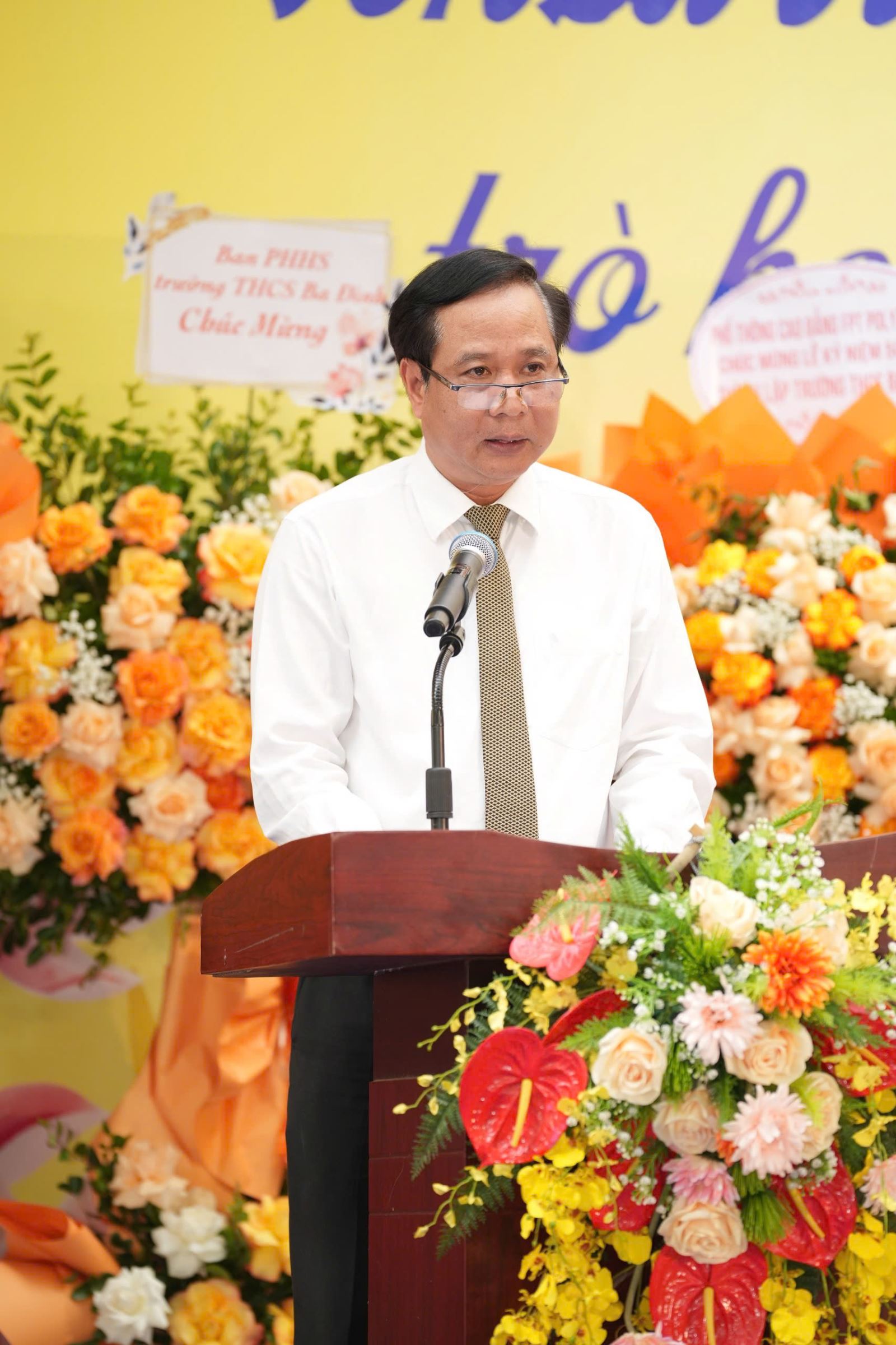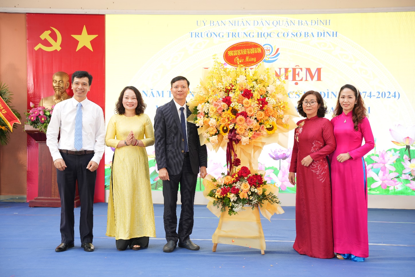 Về dự Lễ kỉ niệm của nhà trường, đồng chí Nguyễn Công Thành - Phó Bí thư Thường trực Quận ủy, Chủ tịch HĐND quận Ba Đình đã có những lời phát biểu chúc mừng nhà trường nhân kỉ niệm 50 năm ngày thành lập. Đồng chí đã bày tỏ: “Lãnh đạo quận tin tưởng rằng Trường THCS Ba Đình sẽ không ngừng vươn xa, tiếp tục là “điểm sáng” của ngành giáo dục quận Ba Đình và Thủ đô, góp phần giữ vững vị thế trong nhóm dẫn đầu toàn thành phố, đồng thời tiến thêm một bước trên con đường xây dựng quận Ba Đình văn minh, hiện đại, xứng đáng là trái tim của Thủ đô anh hùng và văn hiến.”