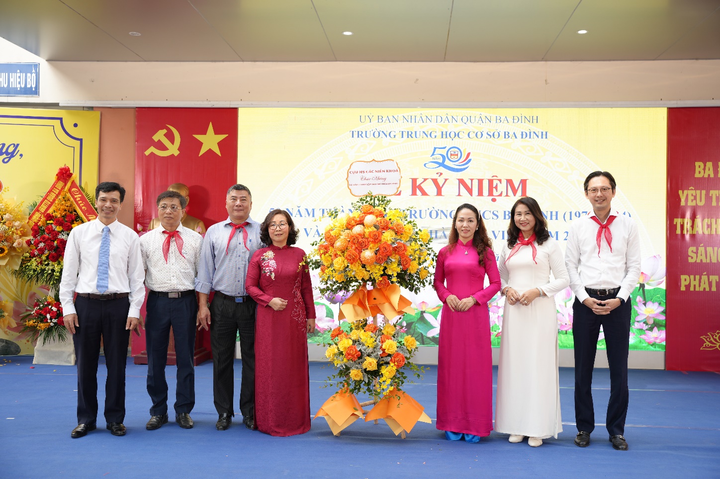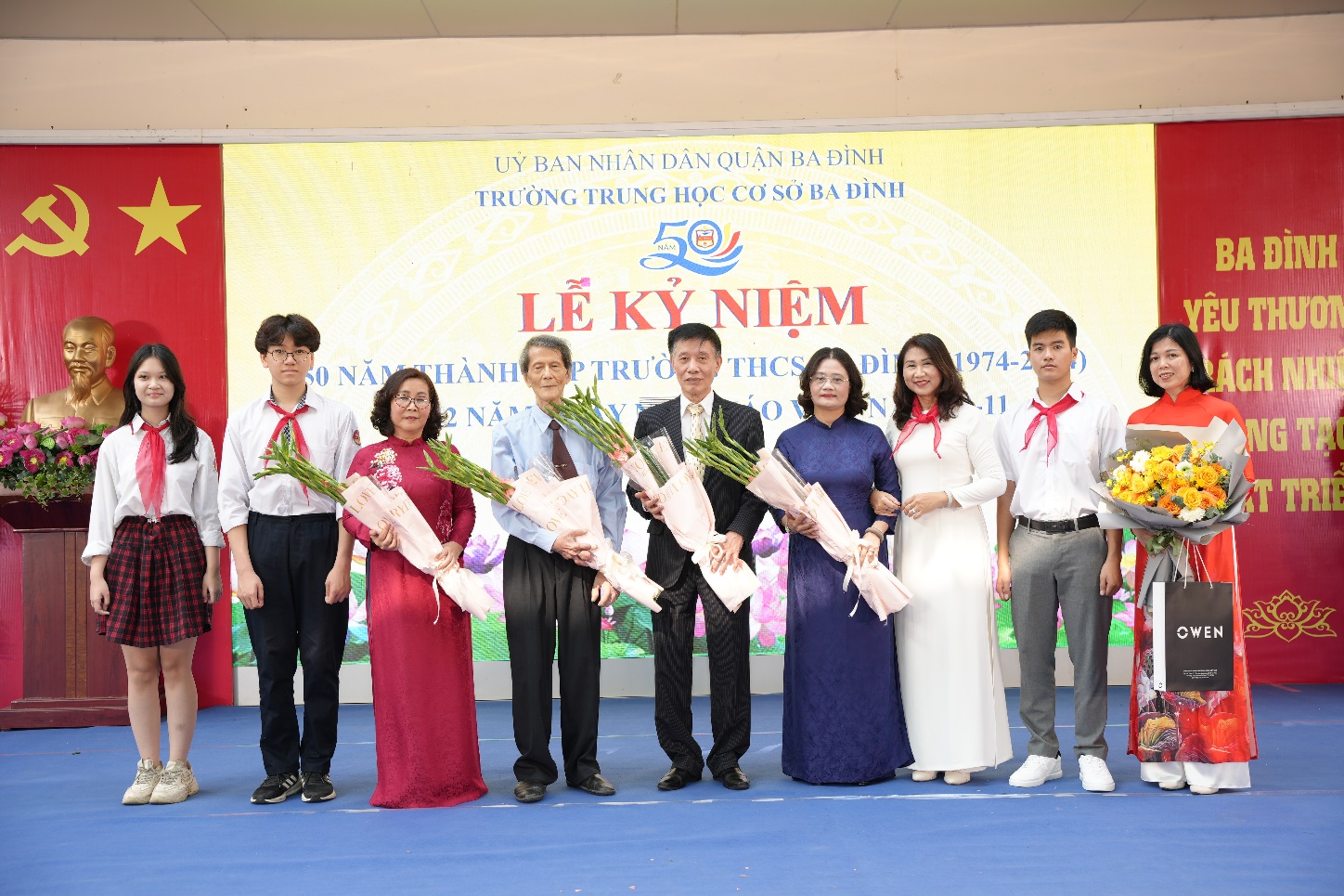 Bên cạnh đó, Lễ kỉ niệm 50 năm thành lập trường THCS Ba Đình còn là cơ hội để các thế hệ giáo viên và học sinh của Nhà trường được giao lưu, gặp gỡ. Nhân dịp này, các thế hệ học sinh có dịp được thể hiện lòng tri ân, sự biết ơn với các thế hệ thầy cô là Hiệu trưởng nhà trường . Những bó hoa tươi thắm đã được trao tặng cho các Nguyên lãnh đạo của Nhà trường qua các nhiệm kỳ, các thầy cô giáo đáng kính đã và đang công tác dưới mái trường THCS Ba Đình.