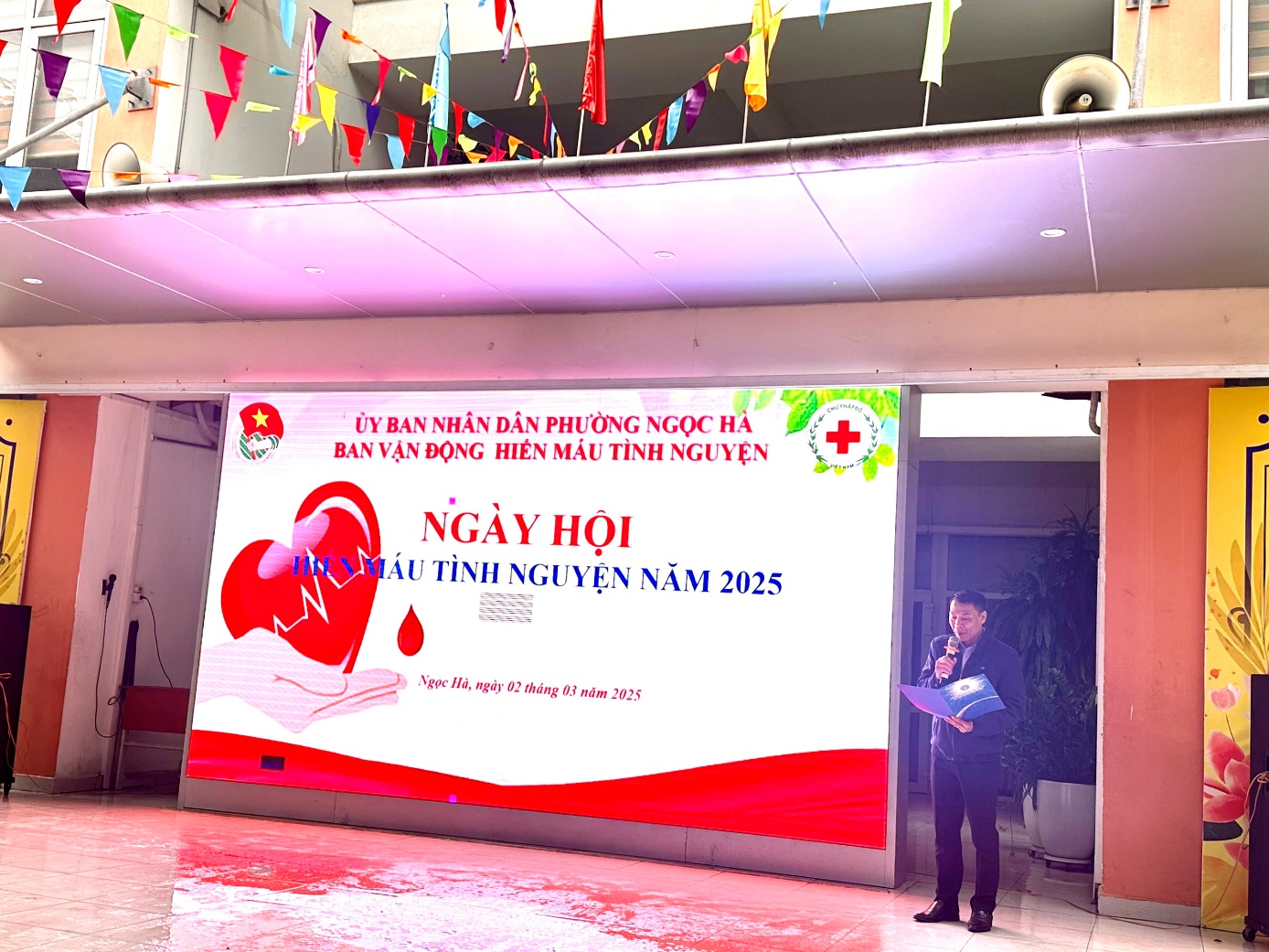 Những năm qua, phong trào hiến máu tình nguyện trên địa bàn phường luôn được quan tâm, có sức lan tỏa rộng rãi và mang lại hiệu ứng xã hội tích cực. Phát biểu khai mạc ngày hội, đồng chí Nguyễn Tú Anh - Đảng ủy viên, Phó Chủ tịch, Trưởng ban BCĐ vận động Hiến máu tình nguyện UBND phường Ngọc Hà đã nhấn mạnh tầm quan trọng của việc hiến máu, đặc biệt là trong bối cảnh hiện nay, việc hiến máu là một hành động nhân đạo, giúp cứu chữa người bệnh và đóng góp vào sự phát triển của cộng đồng.Ngày hội Hiến máu tình nguyện phường Ngọc Hà đã thu hút được sự tham gia đông đảo của người dân sống và làm việc tại địa phương. Ngày hội được tổ chức quy củ, chu đáo trong đó có sự đóng góp công sức của cán bộ, giáo viên, nhân viên trường THCS Ba Đình. Trong một buổi sáng, ngày hội đã tiếp nhận được 436 đơn vị máu từ các tình nguyện viên.