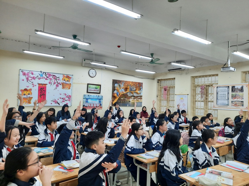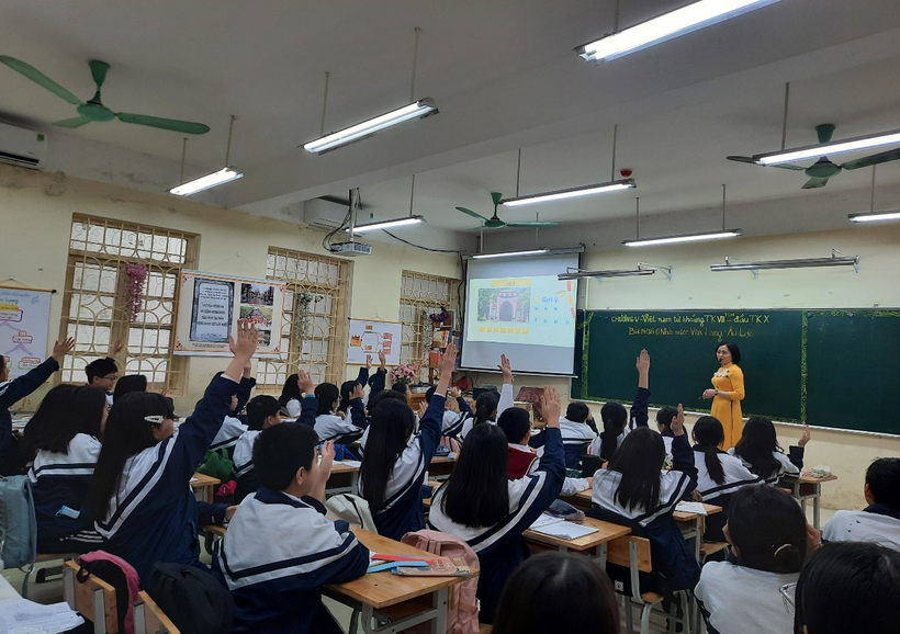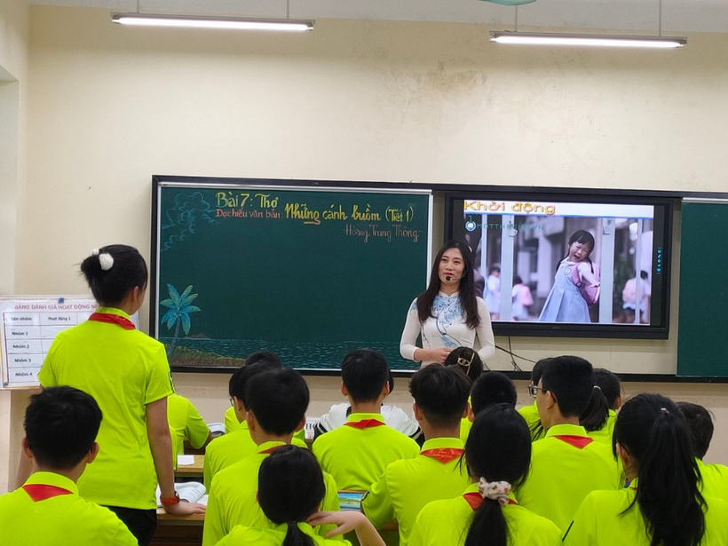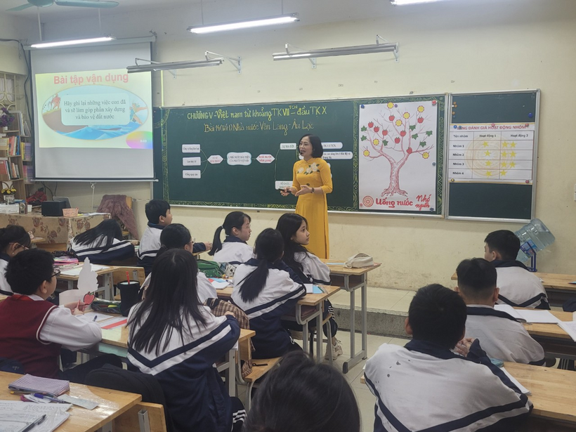 Bên cạnh đó, tiết dạy Lịch sử của cô giáo Nguyễn Thị Vân cũng để lại cho các con học sinh rất nhiều ấn tượng - một cô giáo điềm tĩnh, tâm huyết, nhẹ nhàng. Có thể thấy, từng slide bài giảng, từng sơ đồ, hình ảnh, âm thanh đã được hai cô chuẩn bị rất tỉ mỉ và sinh động.